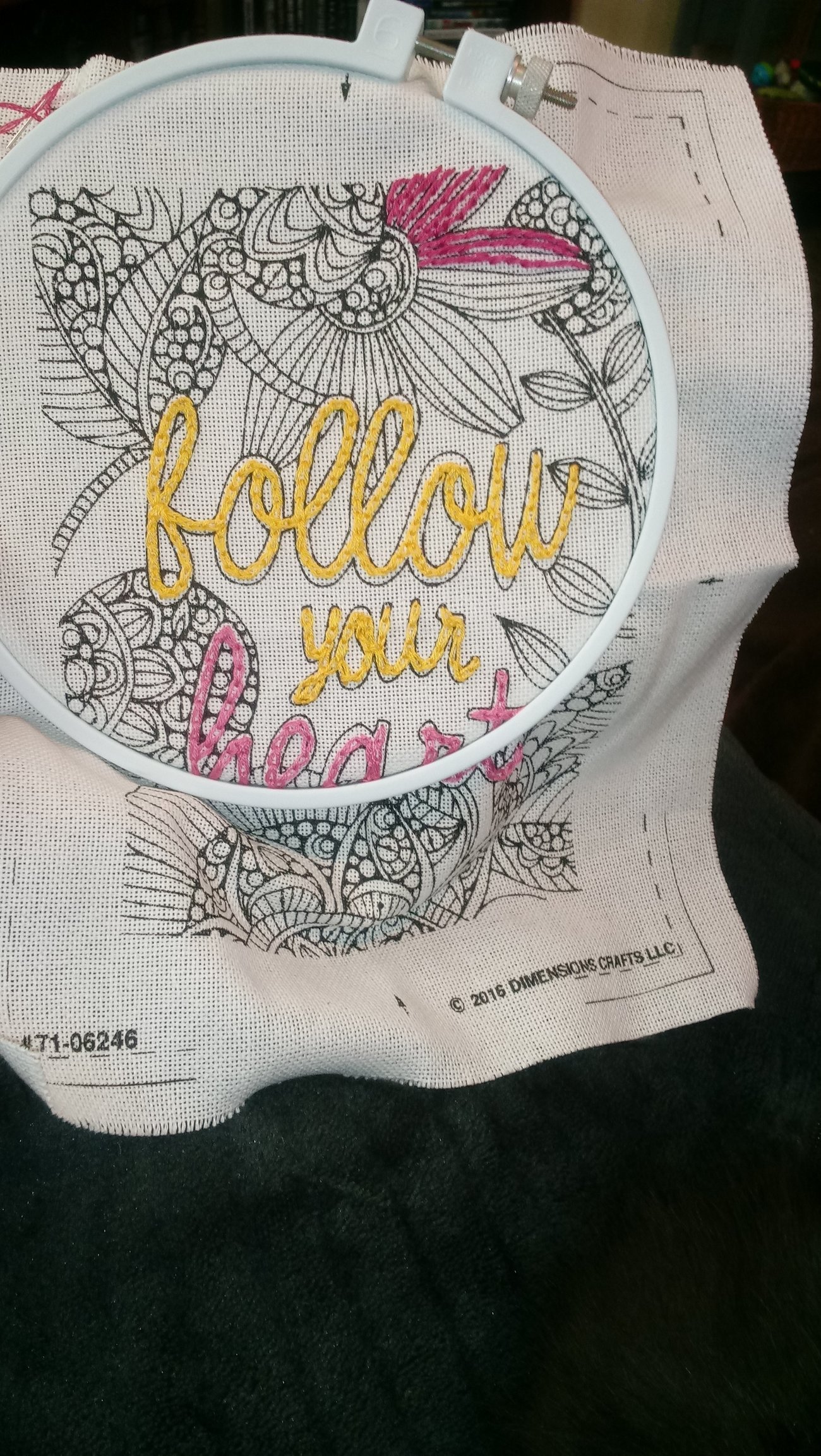 I got a gift card to Michael's for my birthday so I got myself an embroidery kit to try out. So far I don't absolutely despise it, but it is outside my comfort level. Also included some pictures of my recent cross stitch projects