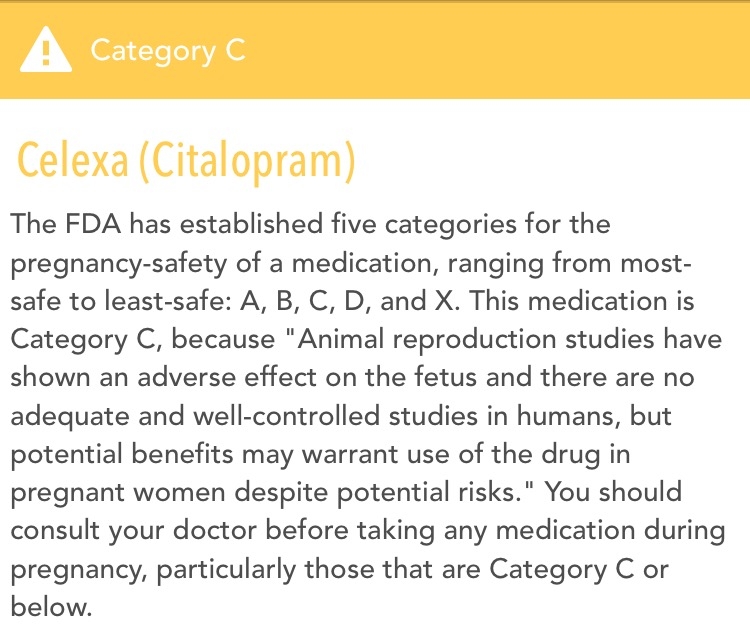 • Hi! I’m cureently taking Celexa and I’m about 5 weeks along. My PCP said I can stay on it and I’m going to ask my OB what they think at my first appointment in 2 weeks.