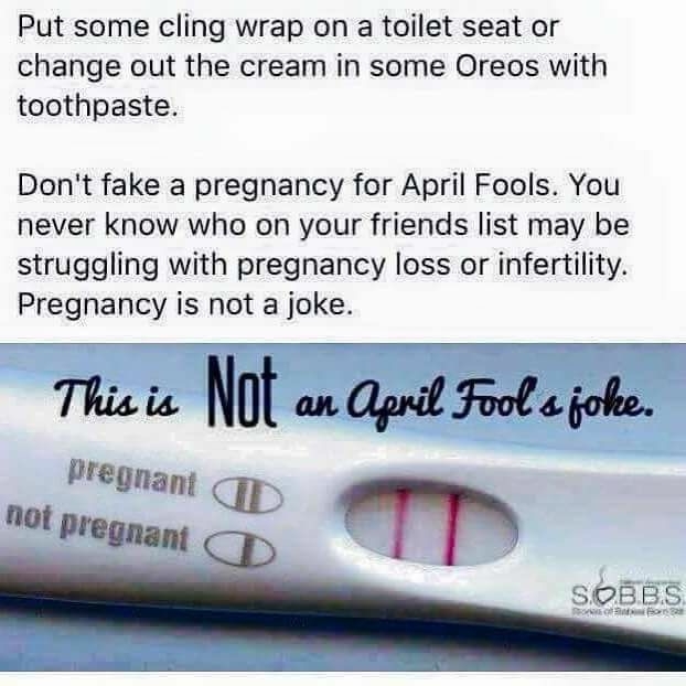 I have a friend whose husband posts a fake pregnancy announcement almost every April 1. Last year I was really tempted to say something, but I decided to let it go.