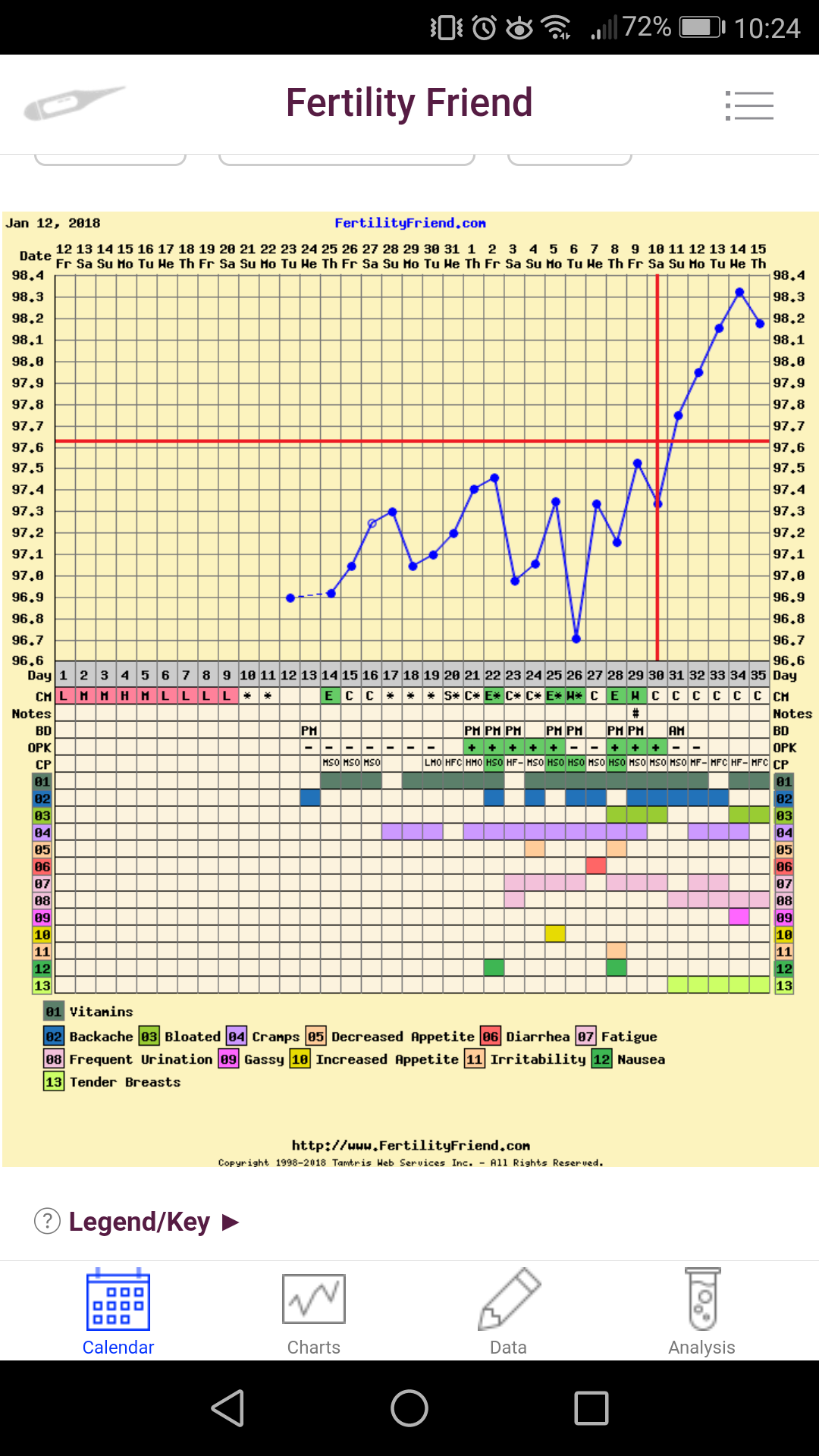 @suzycupcake@tessiesmom26 Thanks I really hope it isn't AF either. I have spotted before but its not a regular thing. Temps are still up so I still have a little hope that it won't turn into AF but....