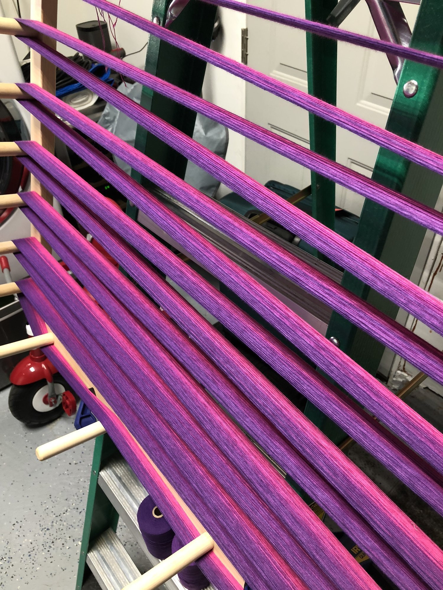 I’m a wannabe weaver. I’m currently stuck waiting for some backordered yarn but should get back to it soon. I have a gorgeous warp planned out and can’t wait to play with different fiber wefts to make some cowls/infinity scarfs as well as my first baby wrap. This will be my second attempt at this warp as I messed up the first one and had to cut it off the loom and start over. Here is a pic of my last attempt on the warping board: and the full plan: