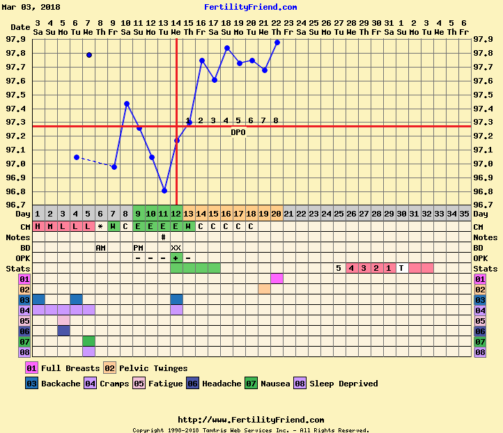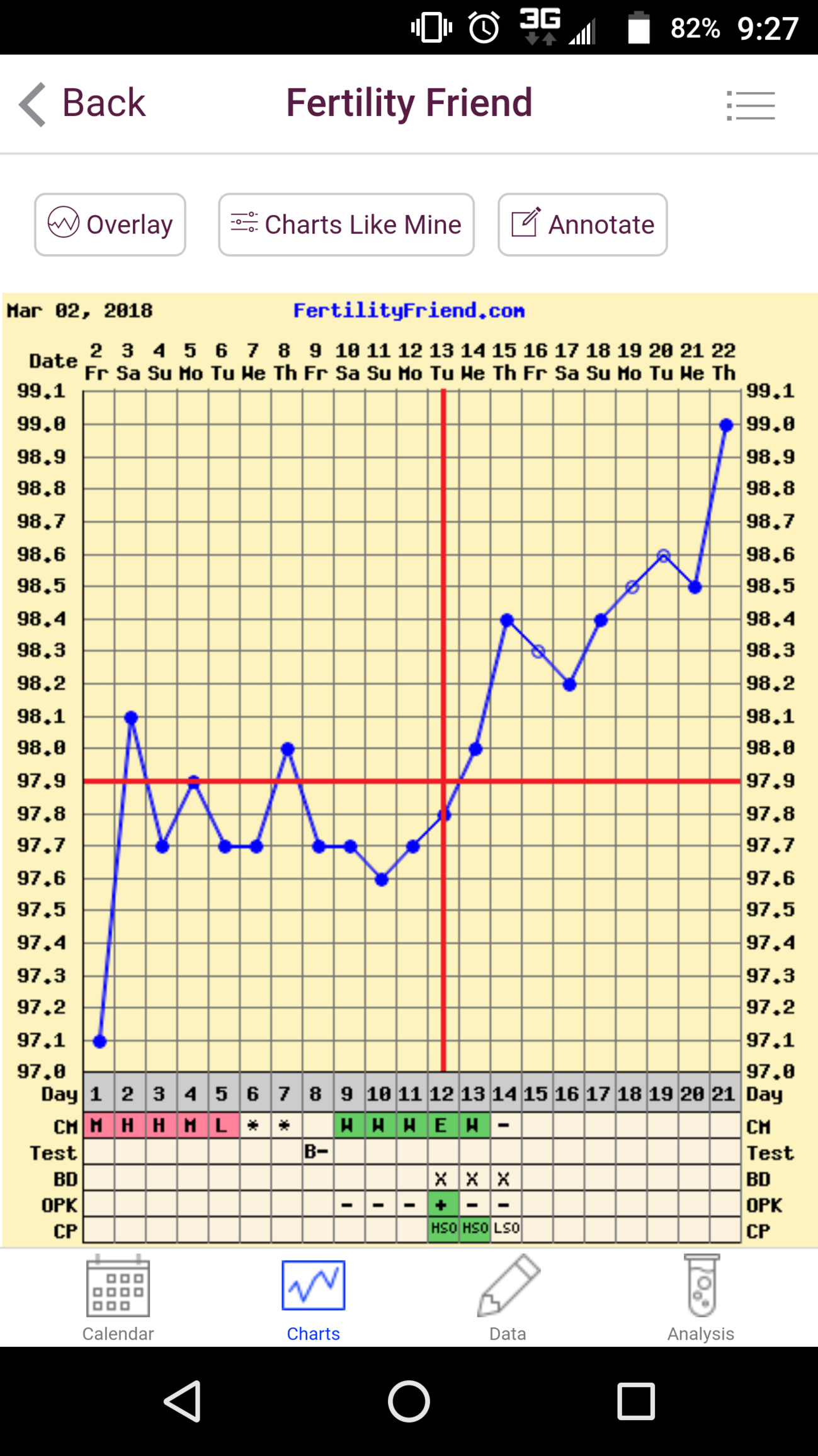 • @holly321 - that chart would make me excited, too! But then I always run warm so I don't count myself as having a fever until it's at least 99.5 or higher.