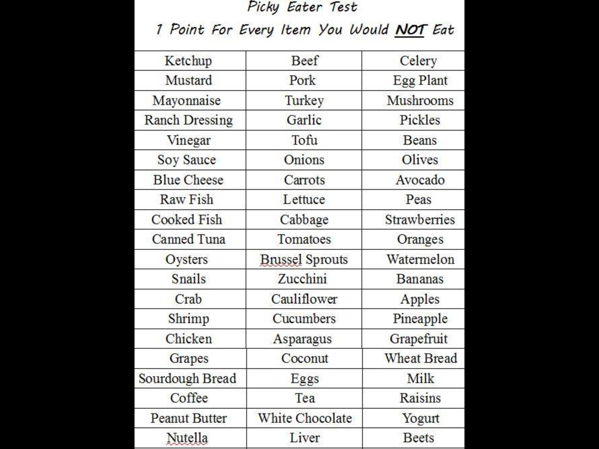 GTKY: How many points do you get from the table? 8 no liver, beef, soy sauce, tofu, ranch dressing, oysters, nutella, or snails.