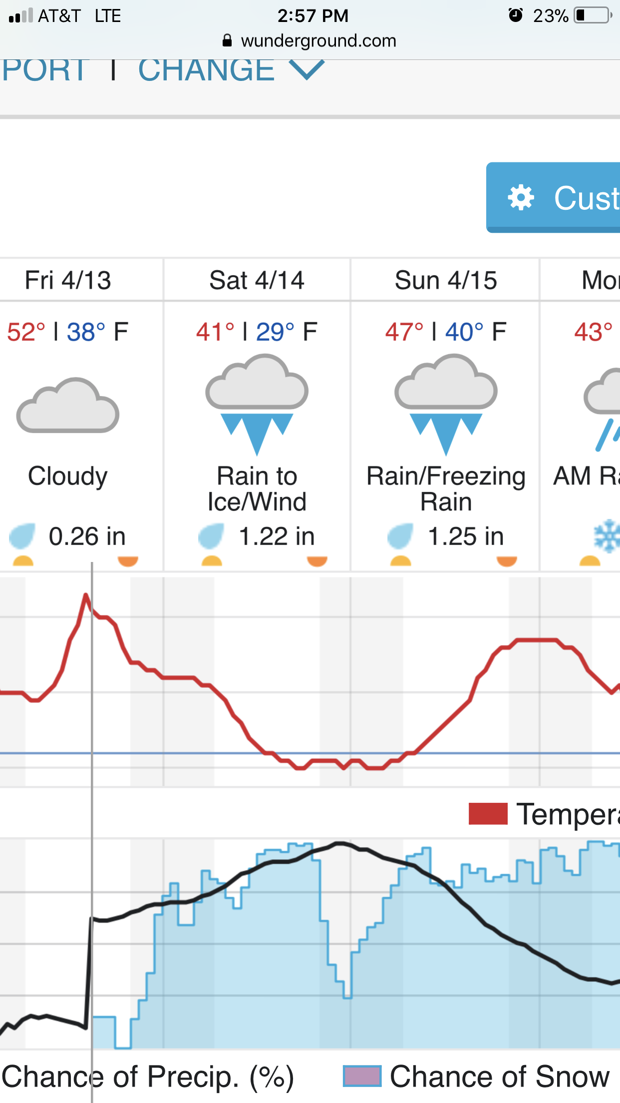 Thank you ladies, I just checked the weather and got to see an icon I have never seen before!  I’m not sure exactly what it means since the description is different on the 2 days that have it, but I’m pretty sure no matter what it is, I probably won’t like it. I’m also thinking I should go shopping now instead of waiting until we are out of food tomorrow.