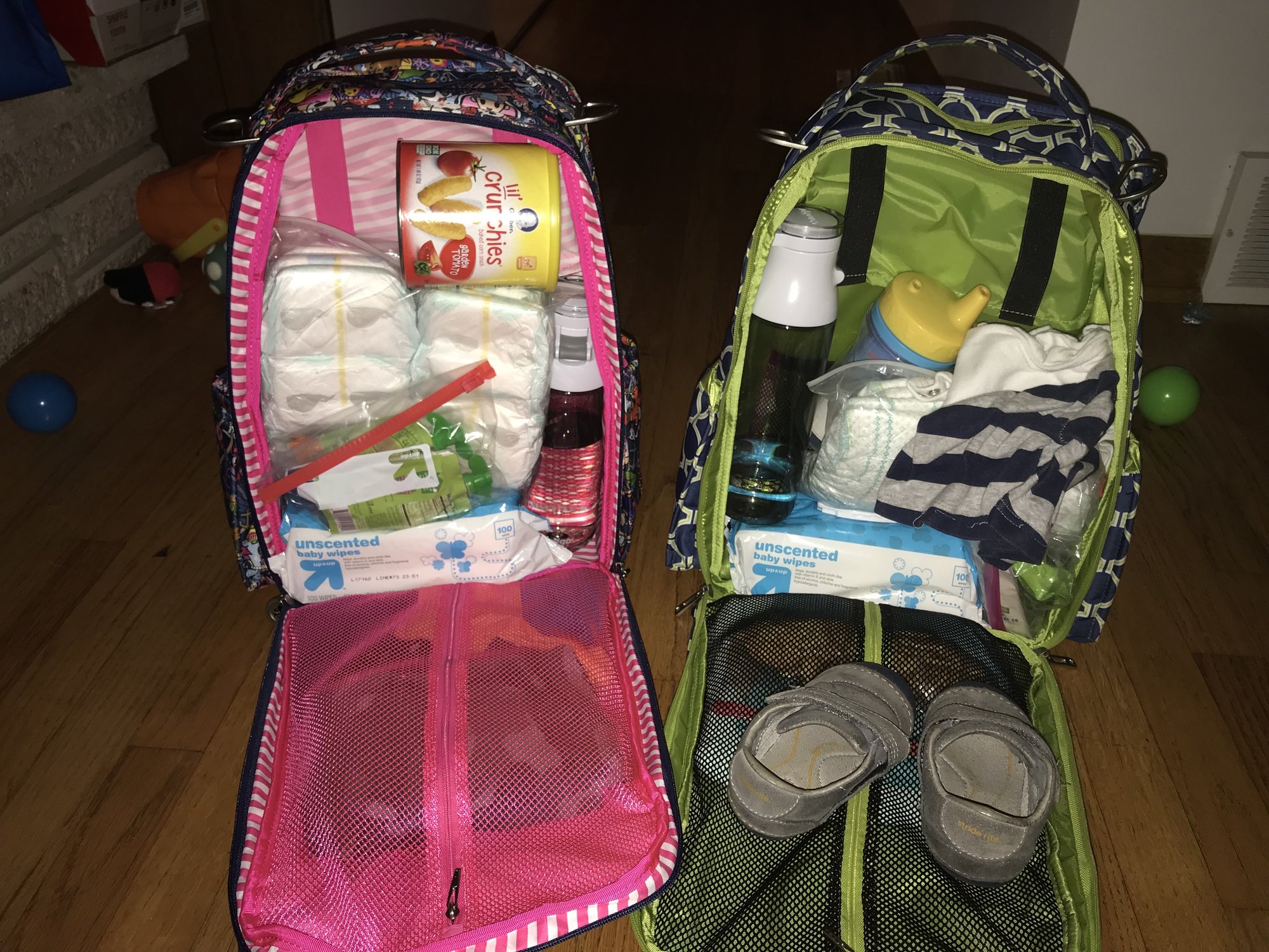 A plus with the PPB backpack is that it also has a shoulder strap so it can be carried two ways. I preferred backpack, DH usually uses the shoulder strap though. I used that bag with 2 kids and then it got gross and I decided we needed to replace it when I got pregnant with my third.