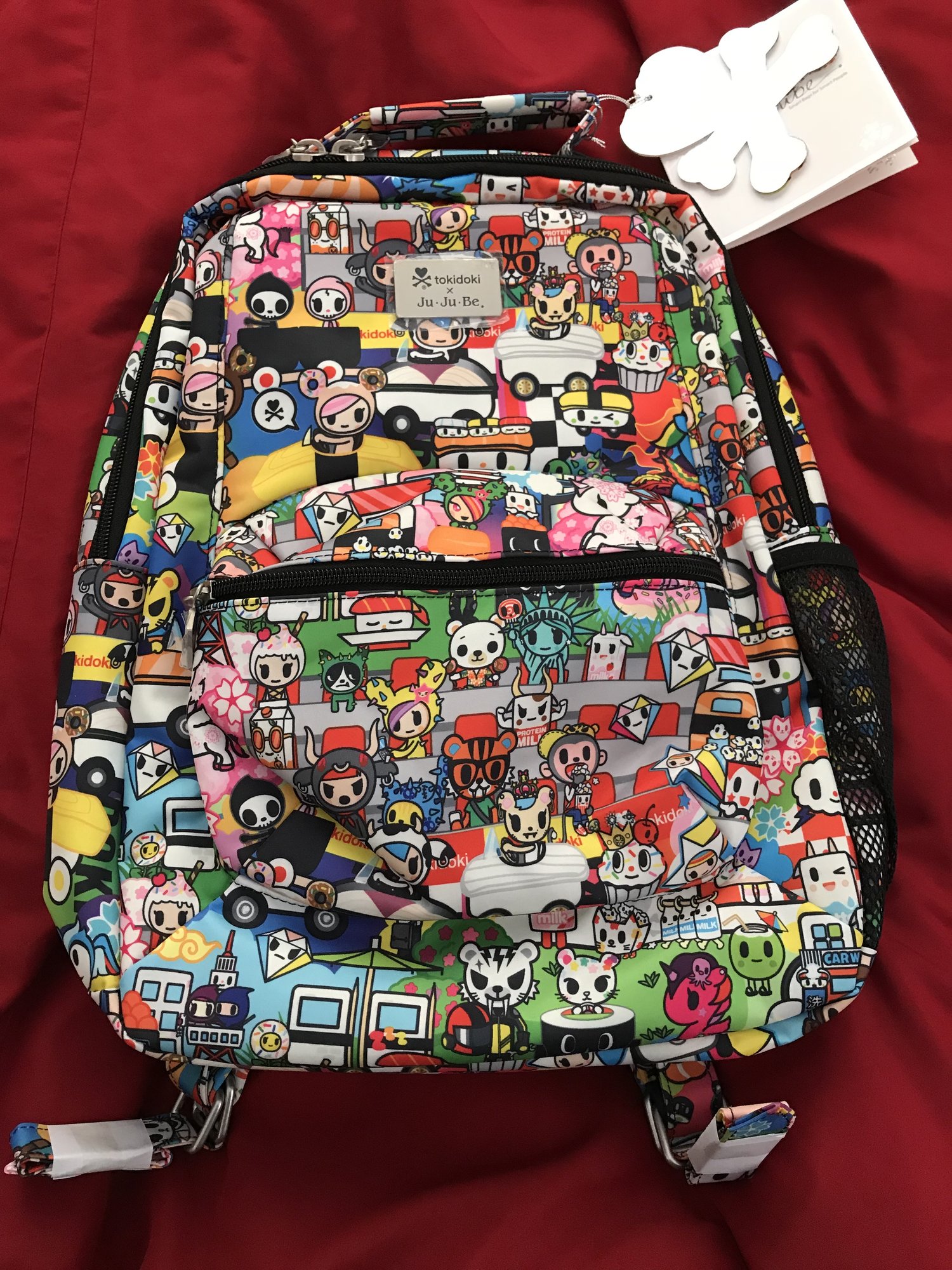 all that being said, i will talk about the jujube be right back (backpack) as technically it is a sold as a diaper bag. here it is online: https://shop.tokidoki.it/tokidoki-x-ju-ju-be-be-right-back-backpack-super-toki.html?gclid=EAIaIQobChMIgZz99_PR2gIVio3ICh2EYANLEAQYBCABEgKr-PD_BwE