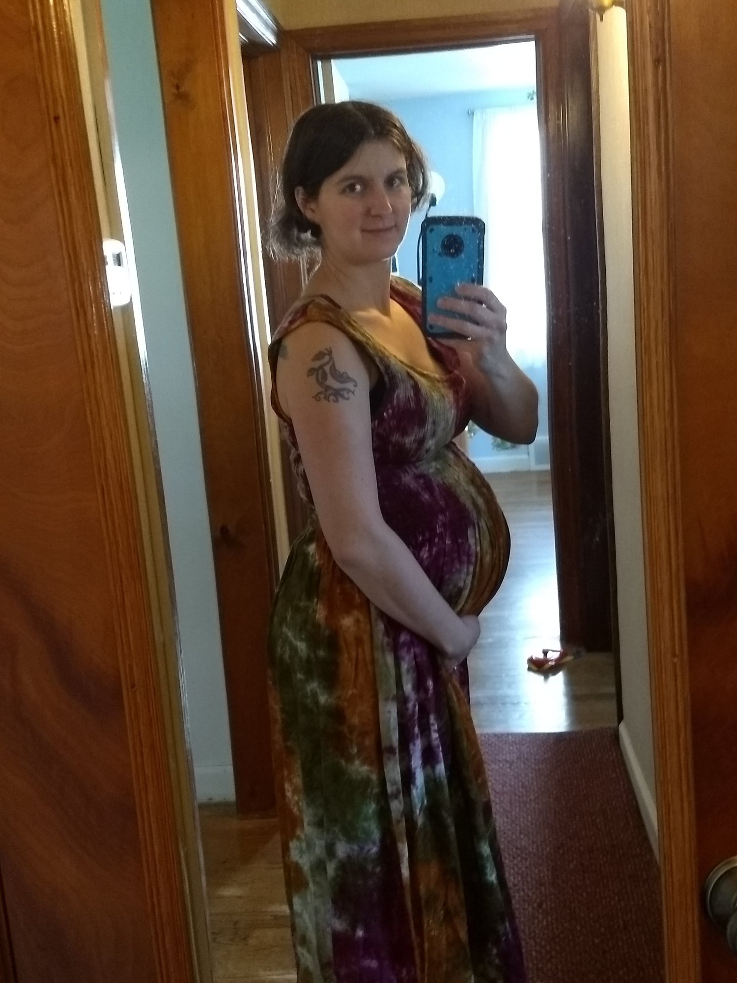 20+5 with number 2. I feel like I'm channeling my Little House on the Prairie today with cloth diapers and this dress, but damn it I'm comfortable.
