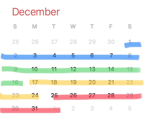 • Also, I think we have a few Jan due dates so they could be lumped into the last one? And if we have any late Nov they can go to the first week.