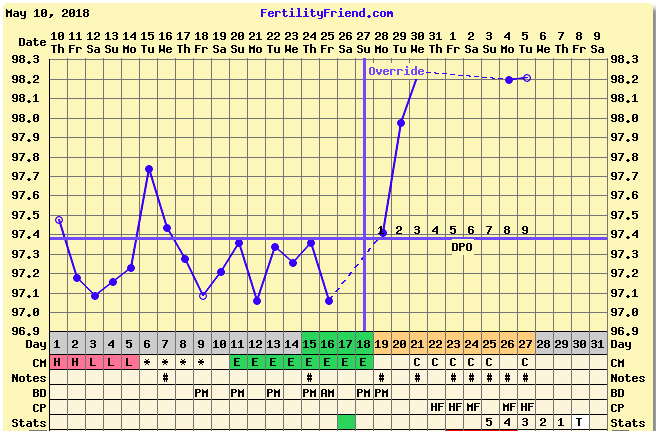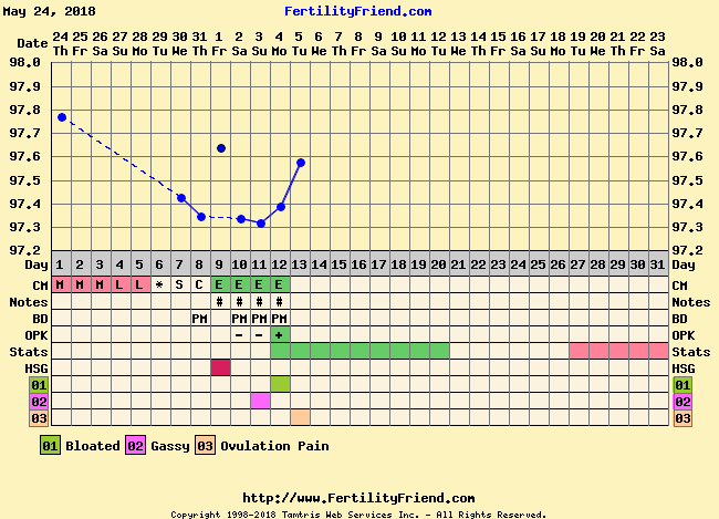 CS/Q: I'm pretty confident O was yesterday based on OPKs (blazers have corresponded with O day for me lately) and the O pains this morning which are typical the day after O for me. The temp increase wasn't huge, but FF will still recognize it if I put in two more high temps.