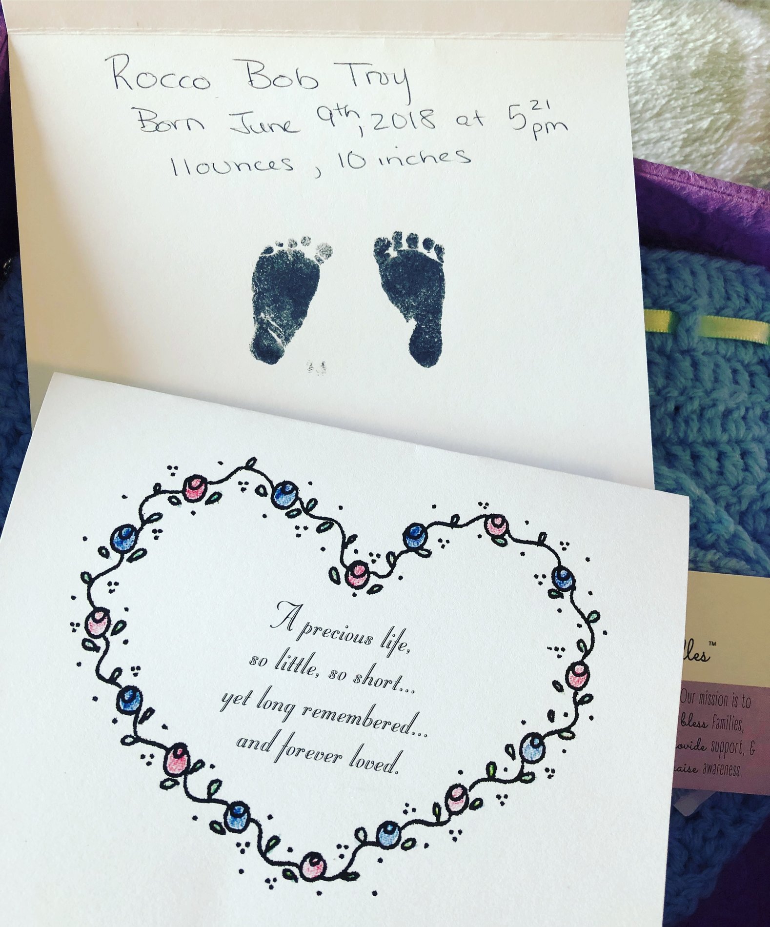 On Thursday I had noticed some thick white dc but chalked it up to one of the many perks of being pregnant. Friday morning I woke up and had to change as I felt like I had peed myself, but still didn’t think too much of it. Later that morning as my husband and I both had the day off we were in Target and I went to the rest room and felt as if I had lost some of my mucus plug. I called my ob and he instructed me to go up to L&D. They confirmed it was amniotic fluid and that my bag had ruptured and they sent me home on bed rest with instructions to follow up with MFM on Monday morning. Shortly after getting home I lost the rest of my plug and spiked a fever. We went back into L&D they did an ultrasound that showed I had barely any fluid. They pretty much insisted on an induction as my blood count was rising. At the last minute I refused the pitocin as I could still feel my LO moving around and he had a strong heart rate. I just couldn’t deliver him knowing that they would do nothing to help him since I was only 19w2d. We decided we’d redraw my blood in the morning and go from there. By morning my blood count had gone up and his heartbeat had stopped. I was sent into Boston via ambulance to be at a more equipped hospital to decide what to do next. They assured me that even though I’ve had two previous sections an induction would be safe. I started the induction process and with in an hour the contractions were so hard and painful with maybe 20 seconds in between that I asked for an epidural 40 minutes later my beautiful baby boy looking equally like his brother and sister was born sleeping. This is the absolute hardest thing I have ever had to deal with and I truly never understood what this was like until it happened to me.