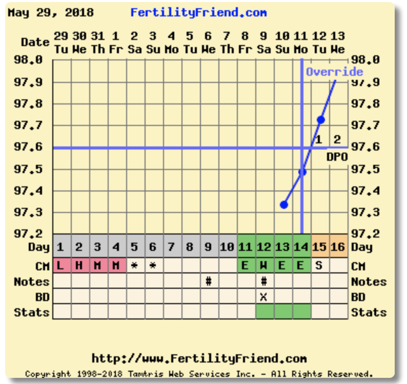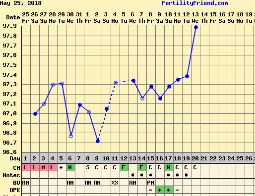 R/R: Positive about O day so I'm jumping over here a day early, not to mention lack of temping this cycle. Wasn't really temping this month until CM showed up and wanted to see if I actually O'd or not. If this isn't my month, DH will be out of town during FW next month and will miss the whole thing. So I'd be sidelined until the end of July.Typical LP length: 12