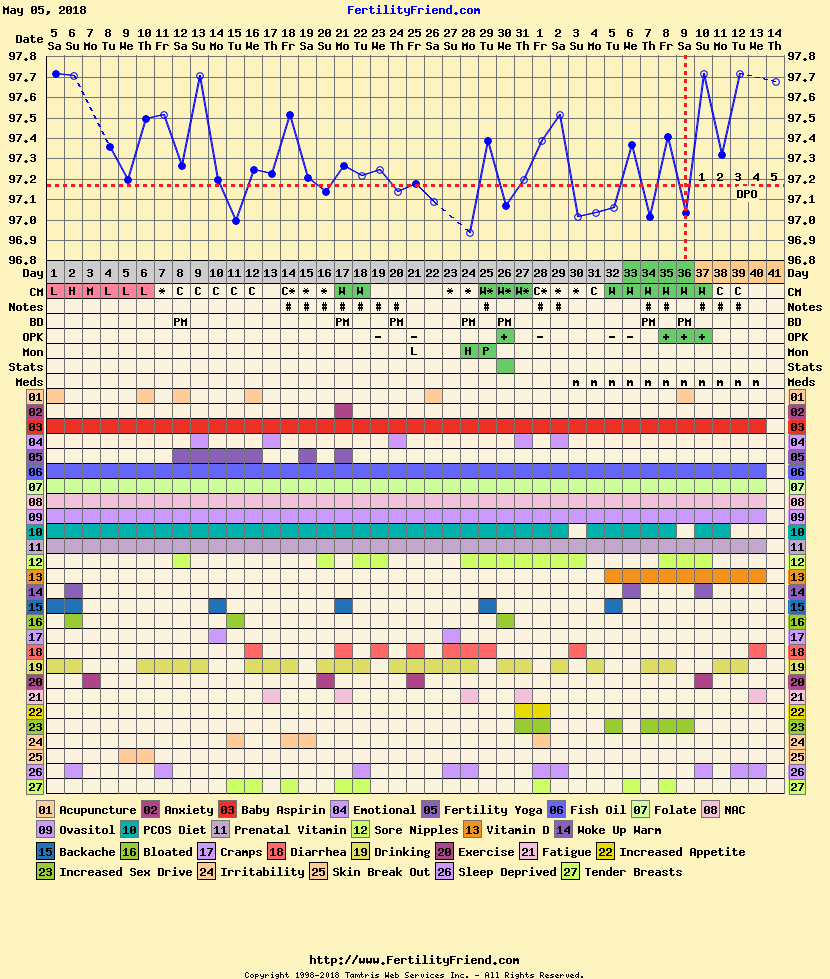 @missthumpa I think I agree with FF on CD18. It likely changed because you have peak in for the OPK on 17 and also EWCM recorded. The temp shift is also more obvious after CD18. Are you using CBADs for your OPKs? It is also helpful to try your best to add CM data every day. Your timing is still good regardless!
