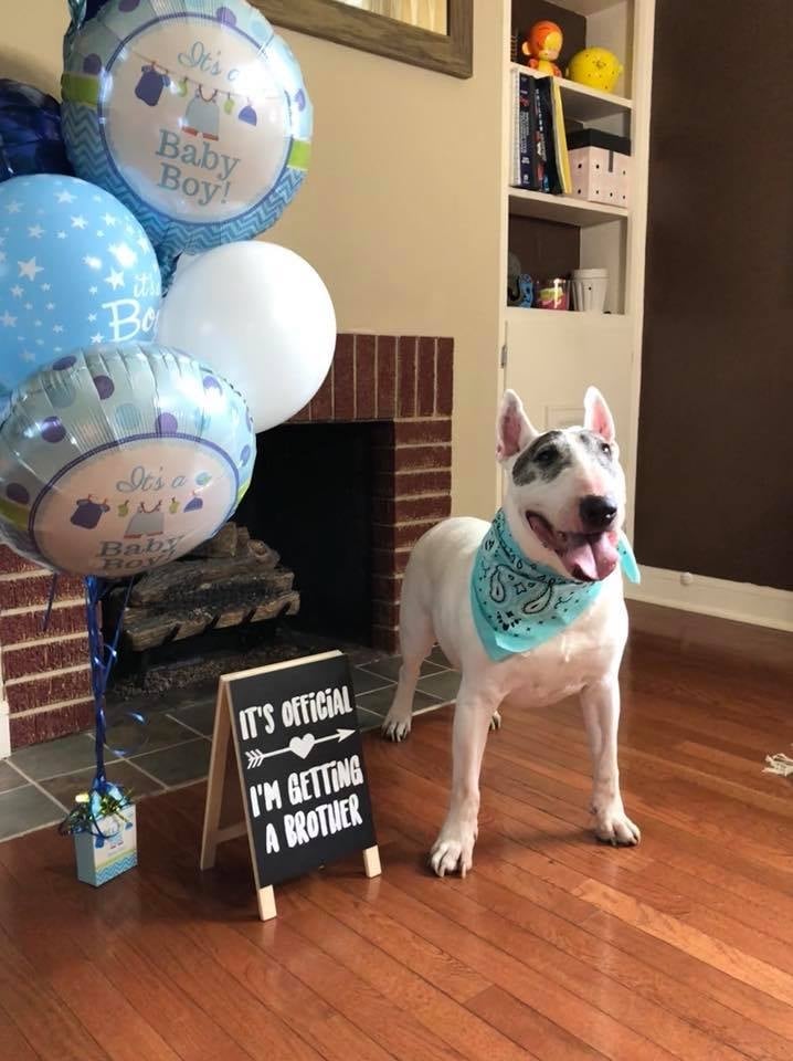 Found out today we are having a little girl! Very shocked and over-the-moon excited! DS refused to cooperate for photos, so the best one I got features my beautiful English bully.