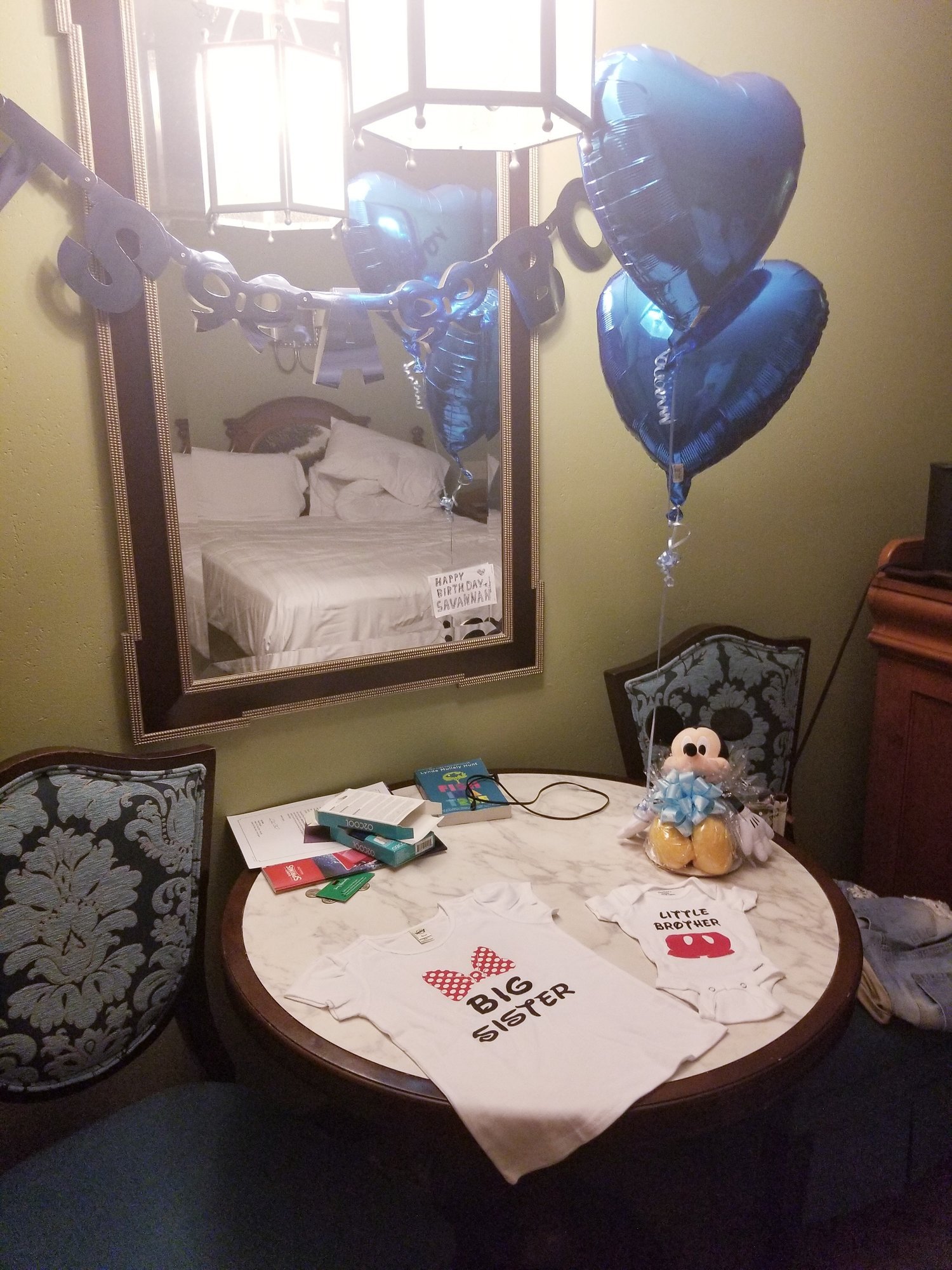 So, I have been holding onto this secret since May 9th! I had the NIPT done and found out gender. I wanted to surprise everyone at Disney! This was waiting for us when we got back to the room!