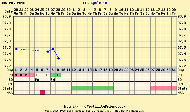 WAYDTGKU: BBT/RHR, OPK, CM, HIO, pre-nat, omega3s, CoQ10, Vit C & D, bought softcups to try, talked to MH about adding SMEP next cycle