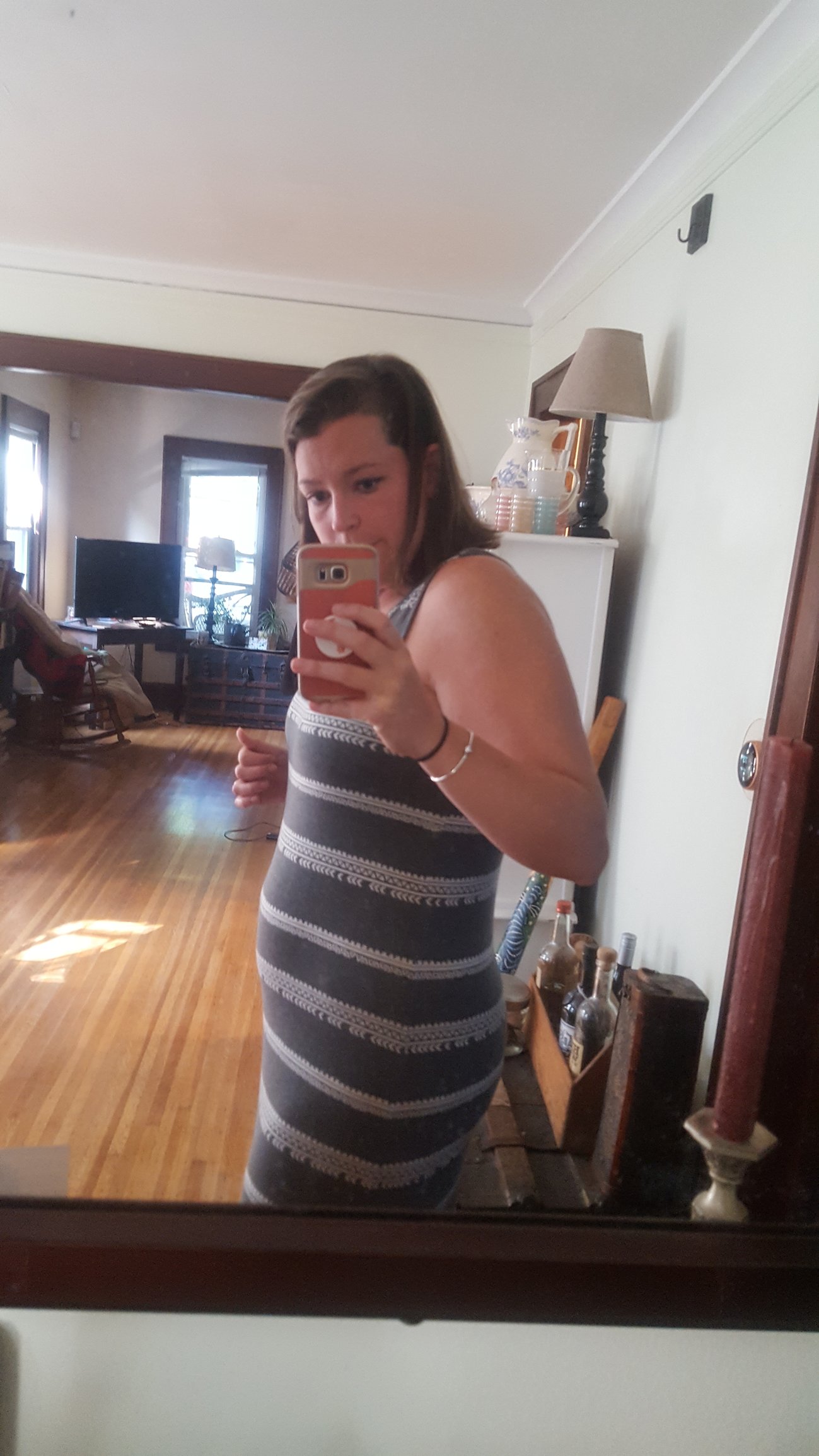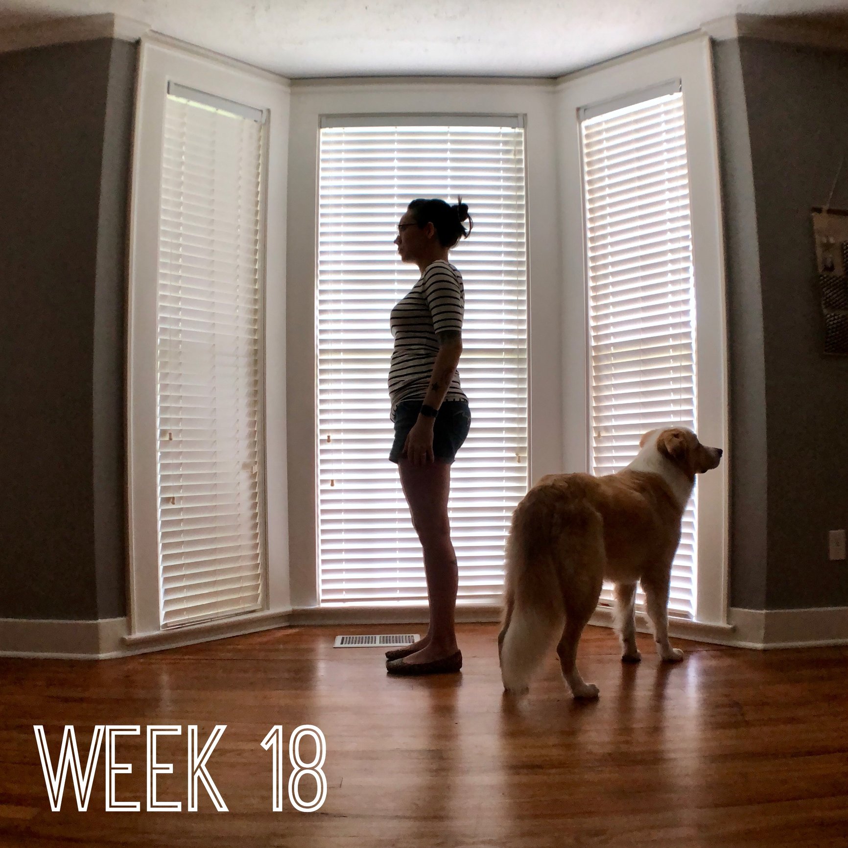 18 Weeks, FTM! Wearing a LLR Julia dress as a shirt again, didn’t realize how bunched up it was on the side