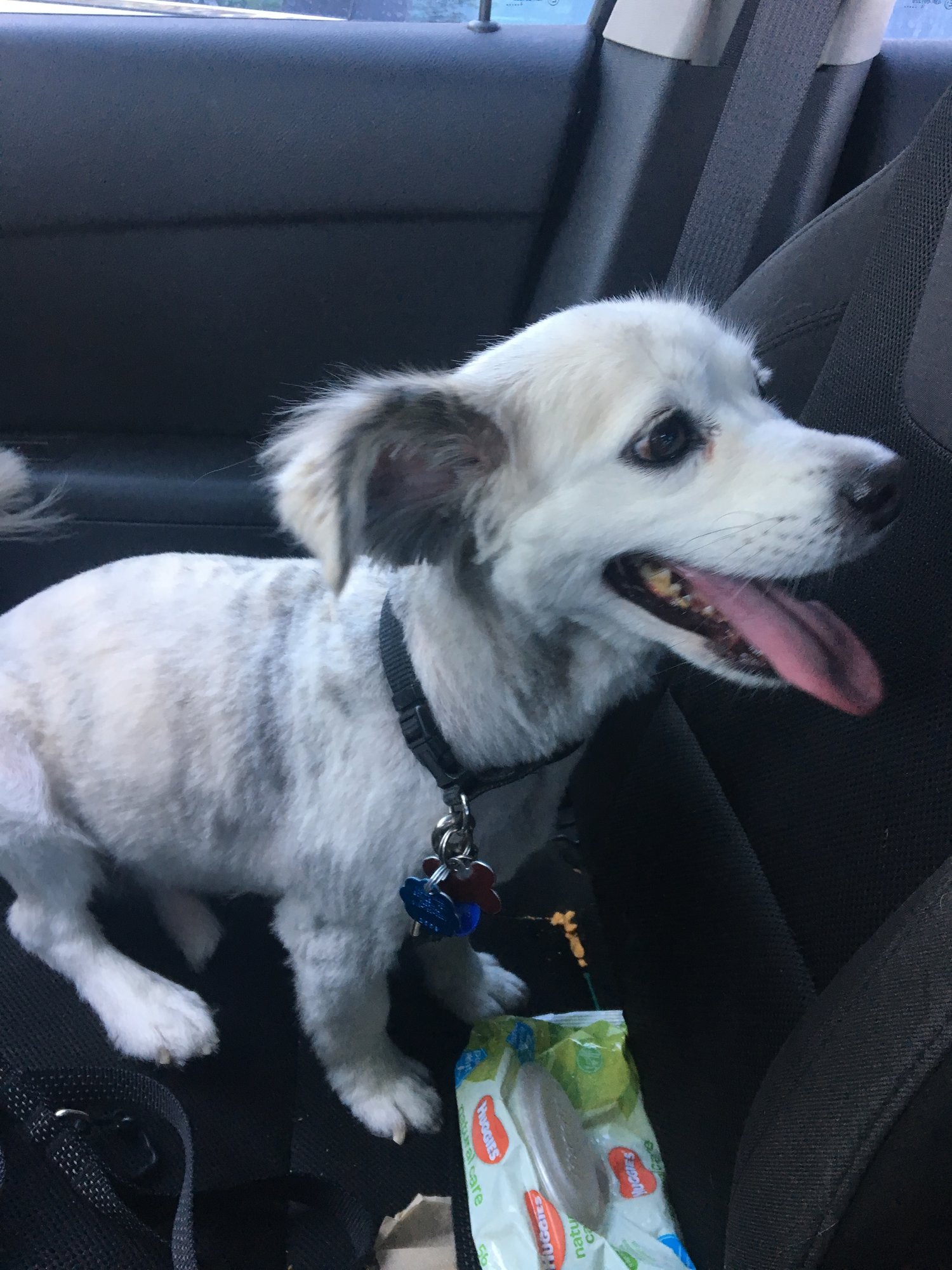 • @maureenmce your dog is adorable! Sorry about the surprise shave, maybe he’ll be cooler in the heat at least? (Looking for a silver lining). My friend’s mom always had the belly of their long haired cat shaved in the summer so she wouldn’t get too hot. She was very self conscious about it and hid her belly for a couple days after.