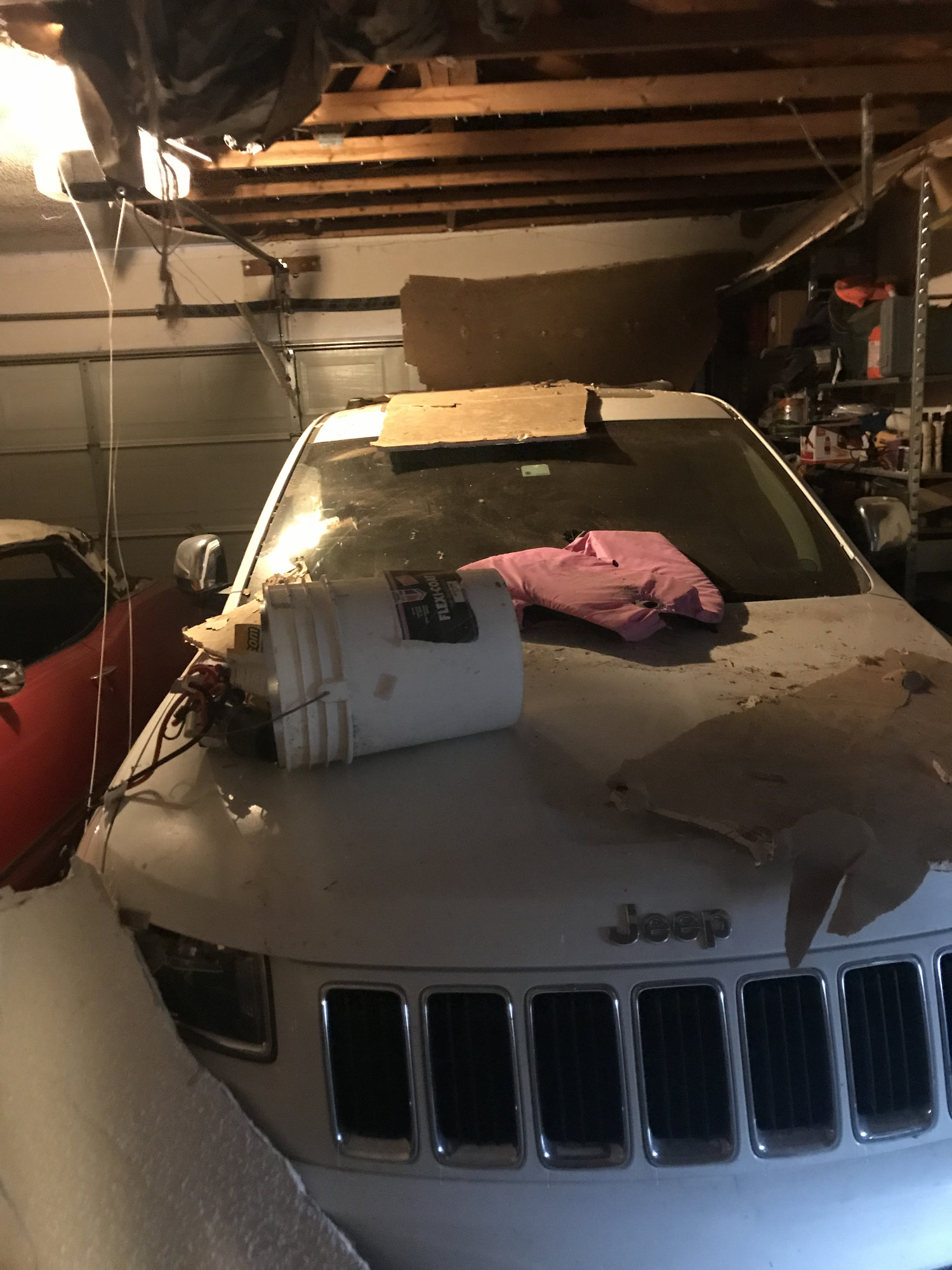 My husband put some dry life jackets up in the attic yesterday and apparently that was too much for the sheetrock somehow.. grr. My car just moved to this side of the garage YESTERDAY which is super frustrating. Luckily my car is okay with maybe one small scratch, and my husband came home and cleaned up the mess already. He’ll probably end up putting some new plywood and sheetrock up this weekend to fix it up. Super thankful he is a great handyman!