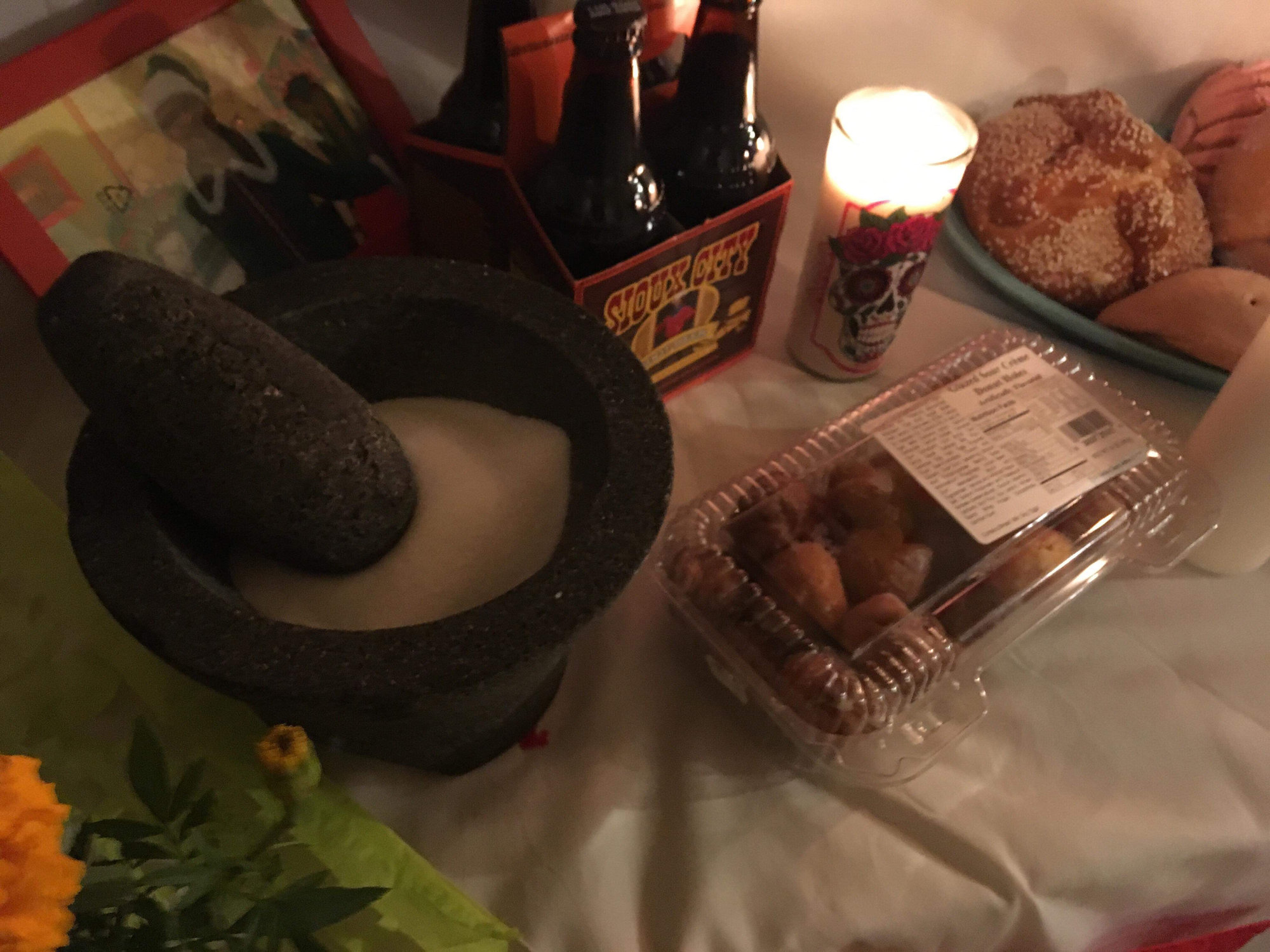 The molcajete is for my grandma. The root beer and donut holes are for my brother