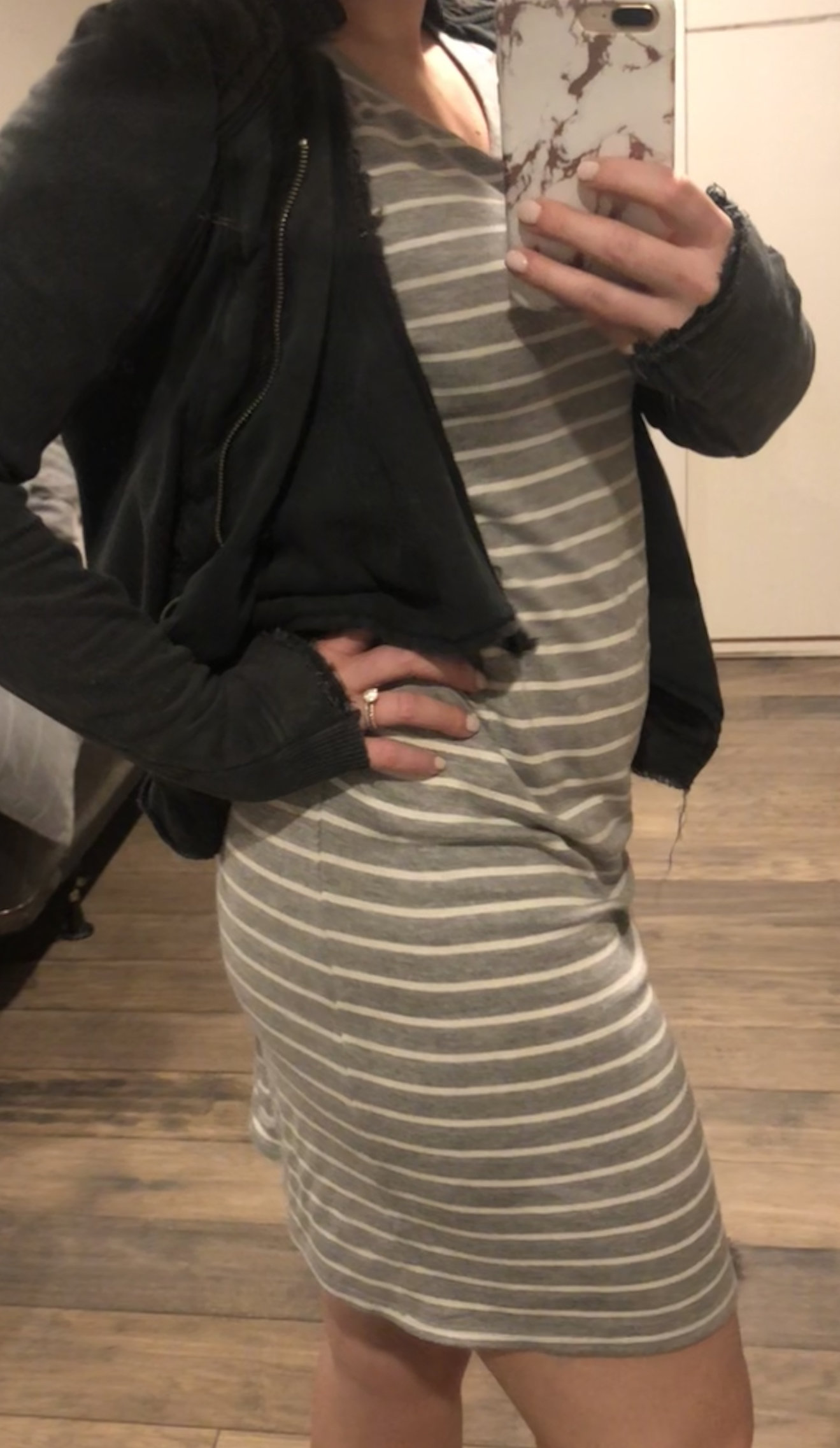 Wore my first maternity dress today (Pinkblush. So comfy!!). A little big in the tummy area but definitely going to be able to grow into it. 14 weeks tomorrow.
