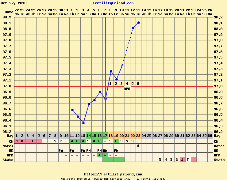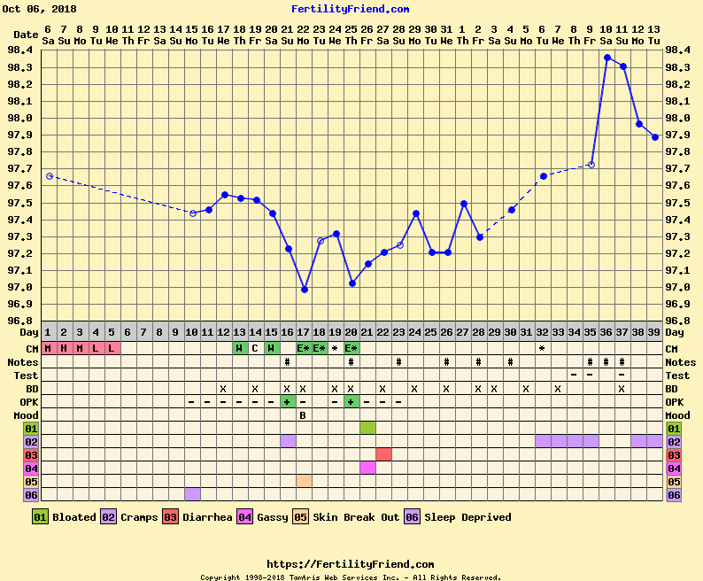 @kiki047 - FAM gives me dotted CHs for CD35, just not sure I agree with it. I finally decided just to put manual CHs on CD32 to make me feel better. I had spotting that day and that's when cramping started. It would make me 7dpo.