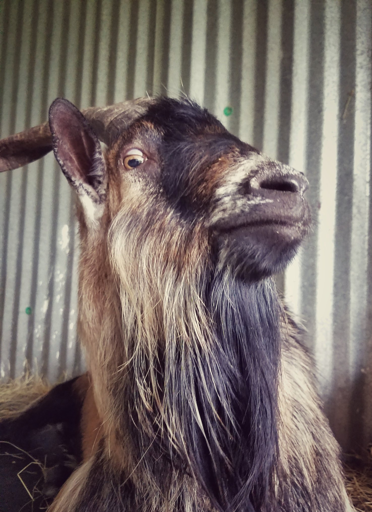 Mine is from our first goat we bought. When we got him home we could tell right away that he had very little interaction with people. He's never been aggressive but as soon as we get too close to him he would give us this look that just screamed NOPE!