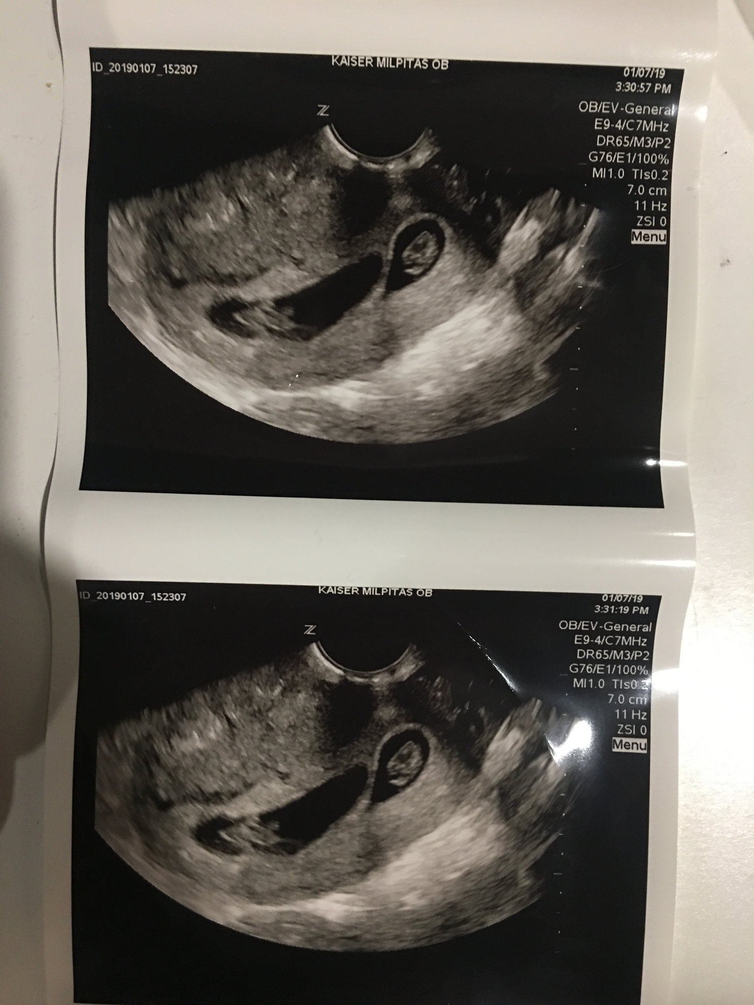 Had our first appointment today. Baby is measuring a few days behind but nothing too worrisome there. Saw the heartbeat although the doc didn’t give us an exact heart rate. He did see a blood clot or subchorionic hematoma that increases risk of MC. So now I have that to worry about. We will go back in 2 weeks to see if the blood clot is reabsorbing. So it overall it went okay, but not great.
