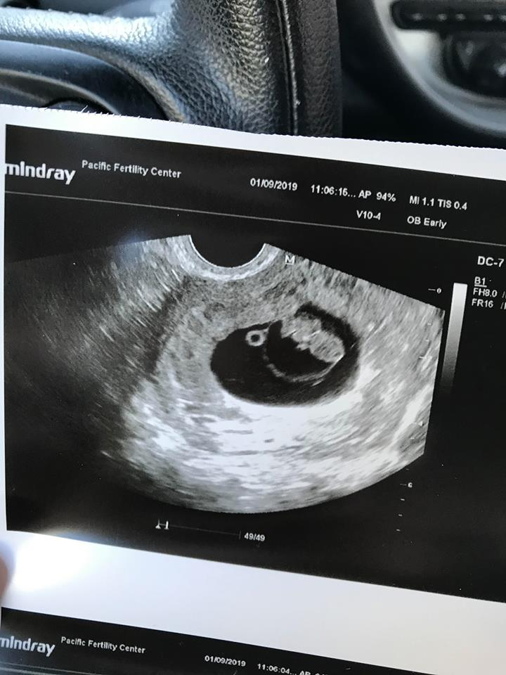 8w3d today. I completely freaked out thinking there would be awful news. I sat there praying in agony because I truly don't think I have another IVF in me. My ass is sore and numb from the shots. When I heard his heart beat (185), all of my fears, in that moment, melted away. Complete awe is the only way to describe it. All I wanted to do was listen to it forever. My rainbow. My little boy. I have a little baby. I'm someone's Mother