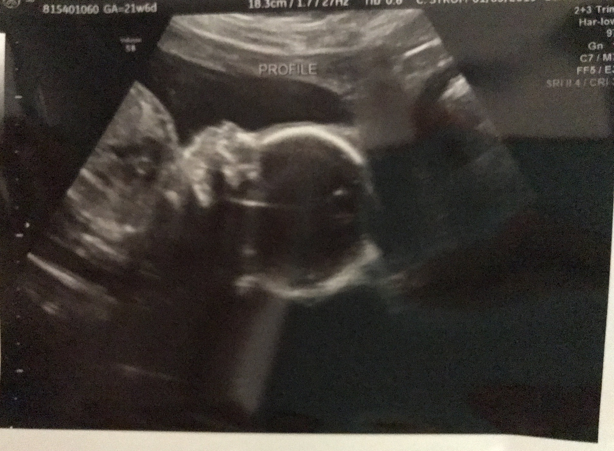 Anatomy scan this past Friday. Baby girl looked great and measured right on time at 21w1d. She kept her hand on her forehead for most of the ultrasound and the tech caught her yanking a couple of times. She was curled up in a little ball with her feet over her head.