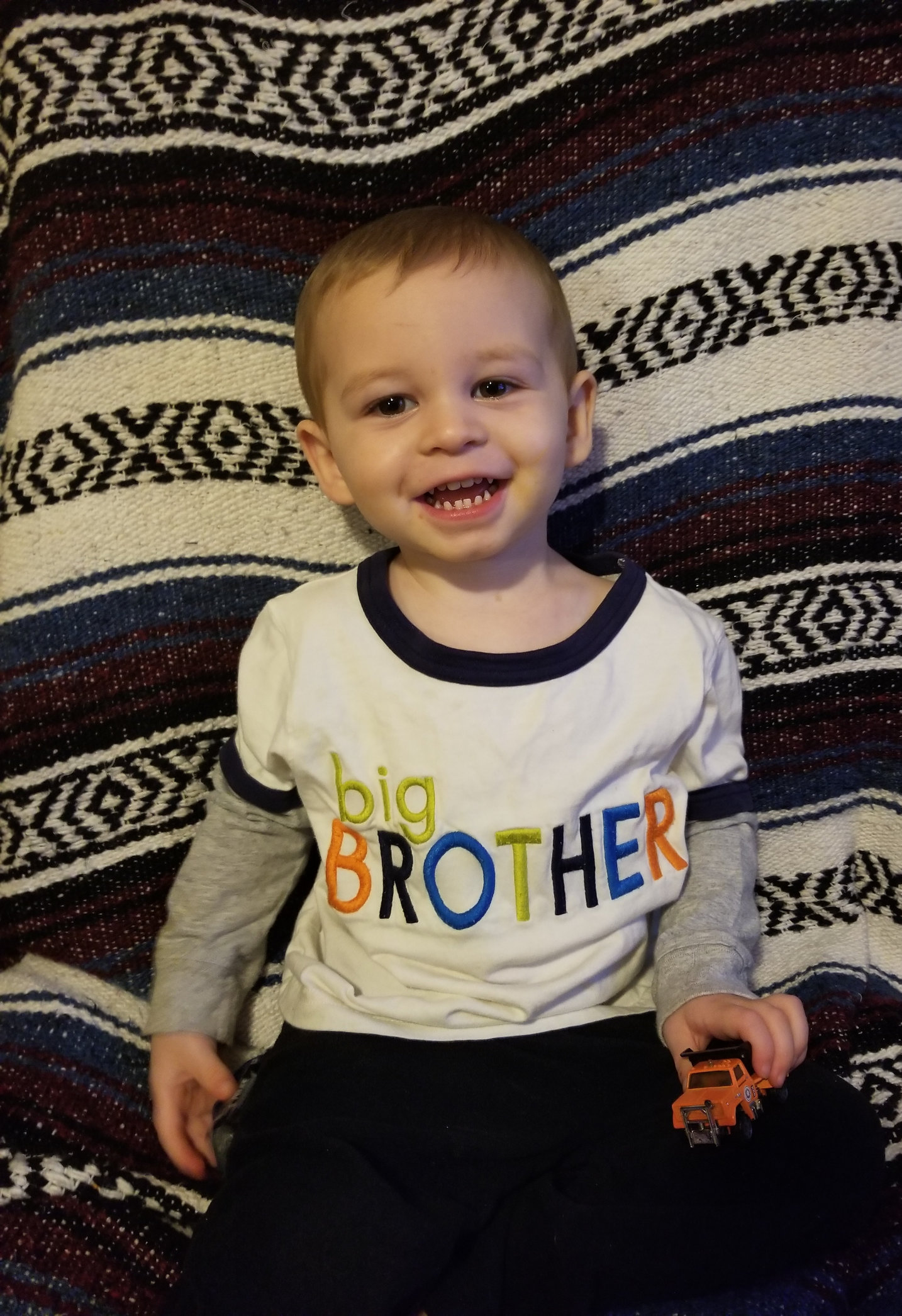 The shirt is a little big, but maybe he will grow into it before the baby comes!