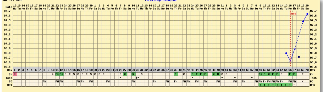 So since I started temping mid cycle is there any point in trying to decipher my chart? My opks have been positive and negative off and on since Cycle Day 66. I wasn't sure if I could use that first day as my cover line since it does look like I had a temp jump or not?