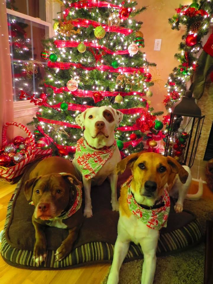 Our three amigos (taken a few years ago), left to right, Indy (9), Molly (10) and Maggie (13), all rescues and they keep us busy. The pits are excellent nanny dogs to our daughter, our coonhound...not so much 😕