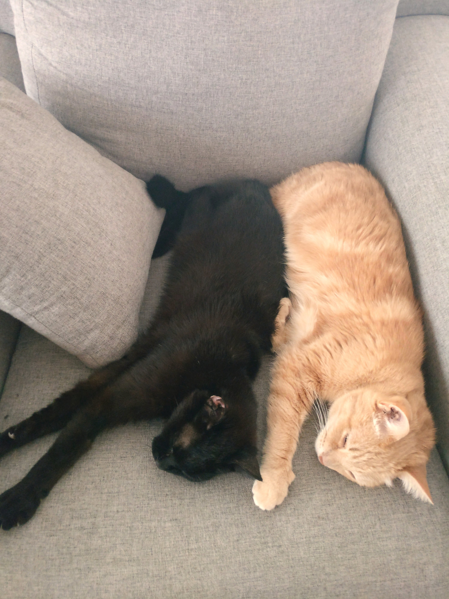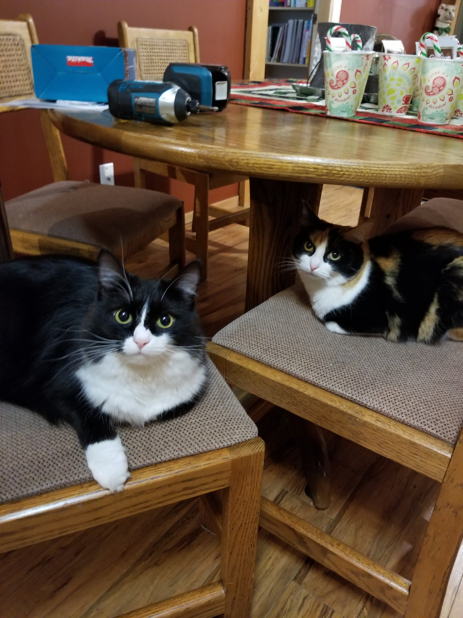 Here are mine. Sprout (top), Caliban (left), and Odin (the dog).