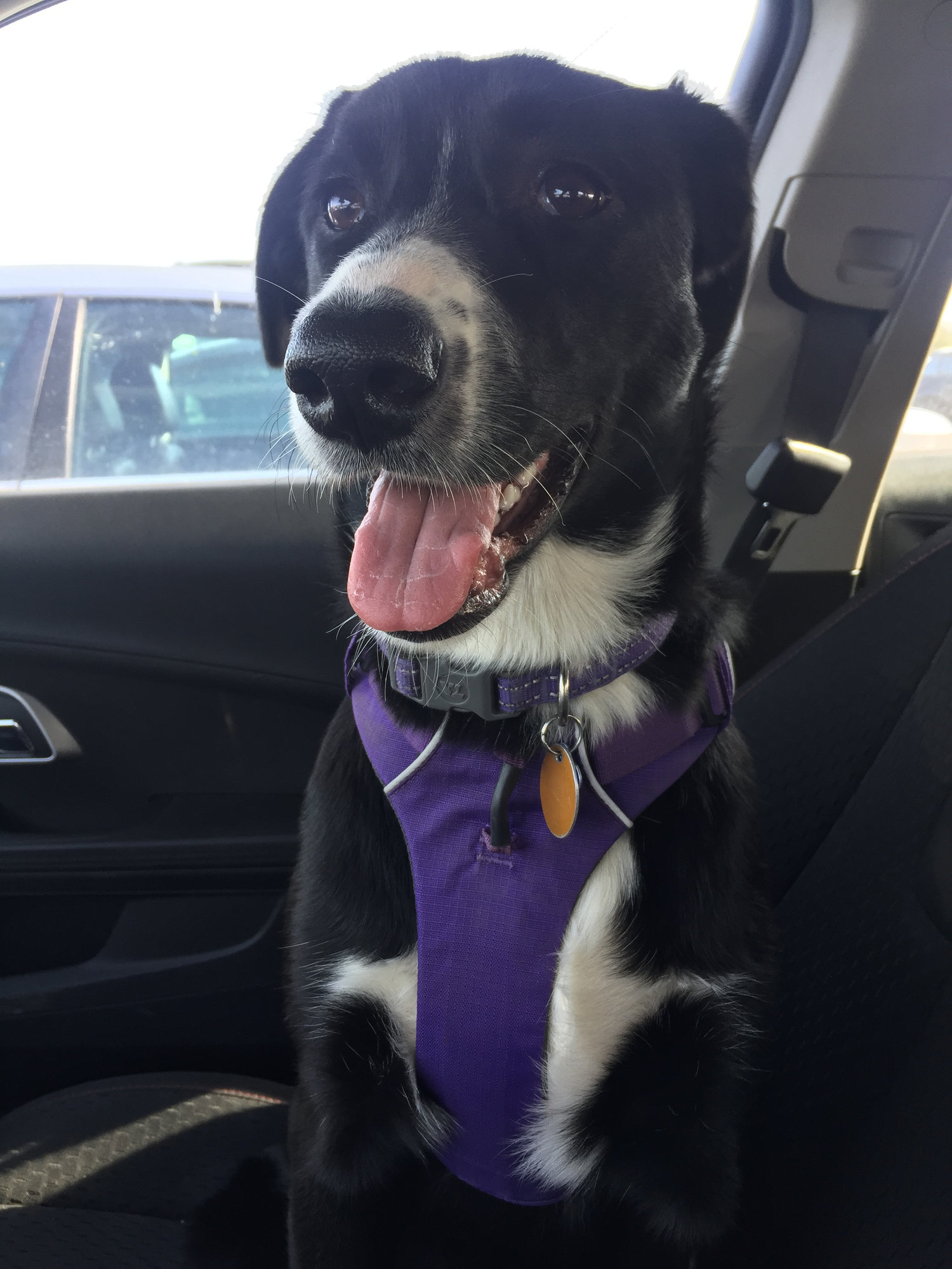 here are sweet Jasper & sweet Nova in the car, when we took our coast-to-coast roadtrip in Dec.