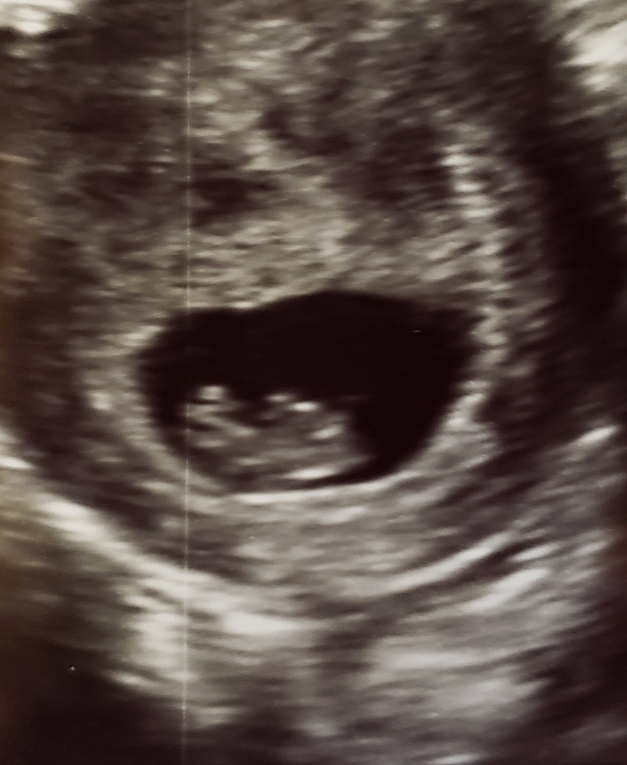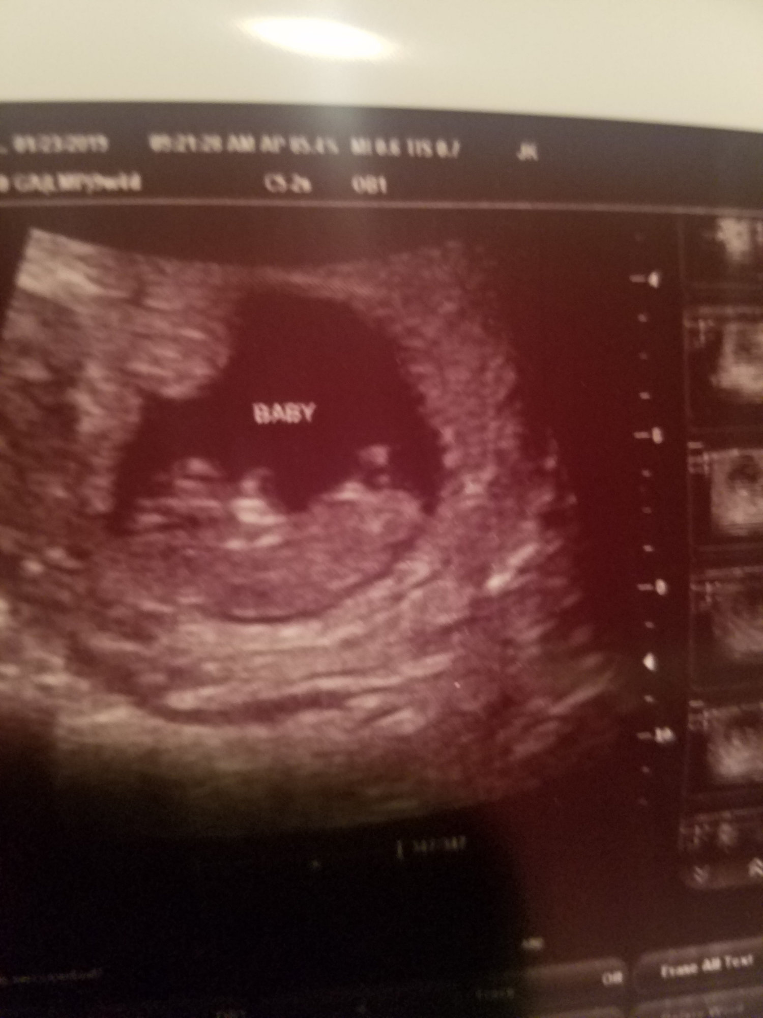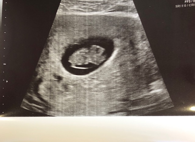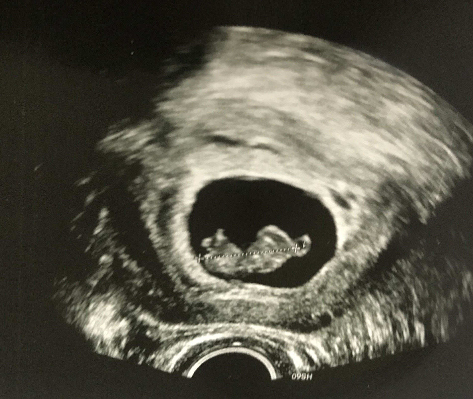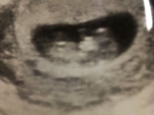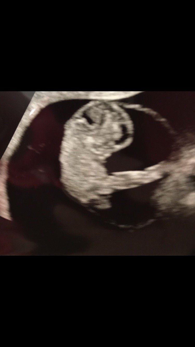 • Had my first prenatal appointment today! Got to see my little gummy bear again (original got an ultrasound from a free pregnancy clinic). Everything looks good! I'm 9 weeks pregnant but baby is measuring at 8 weeks 6 days. 2.2 cm, heartrate at 176. I am so happy! Image on the left was at 7.5 weeks, and on the right, today at 9 weeks.