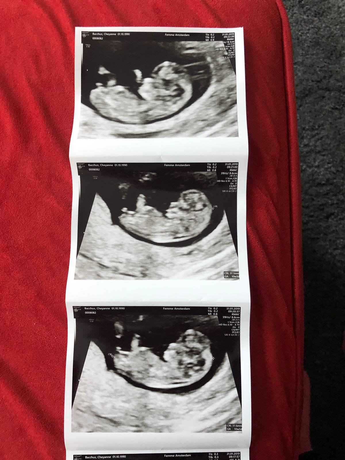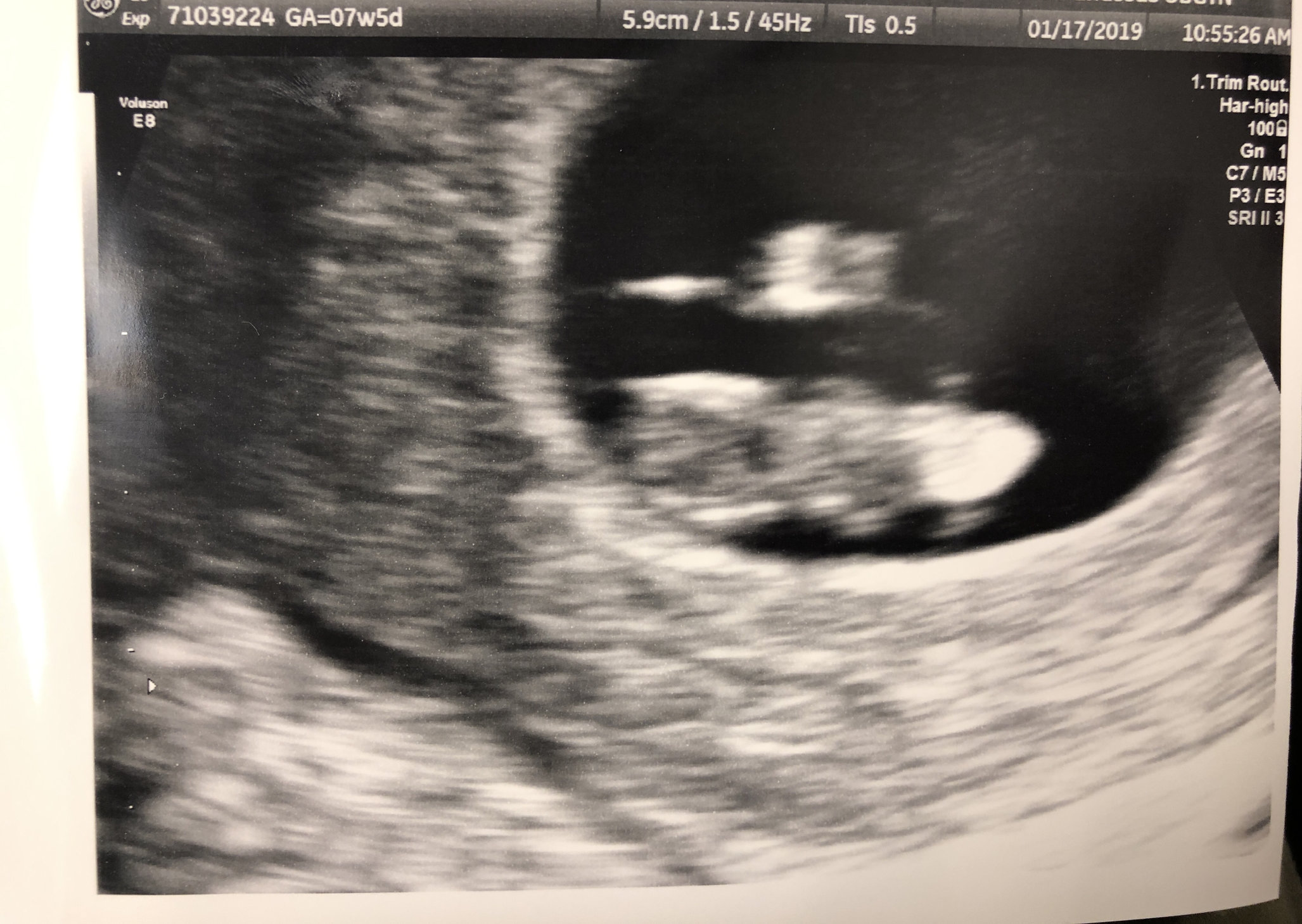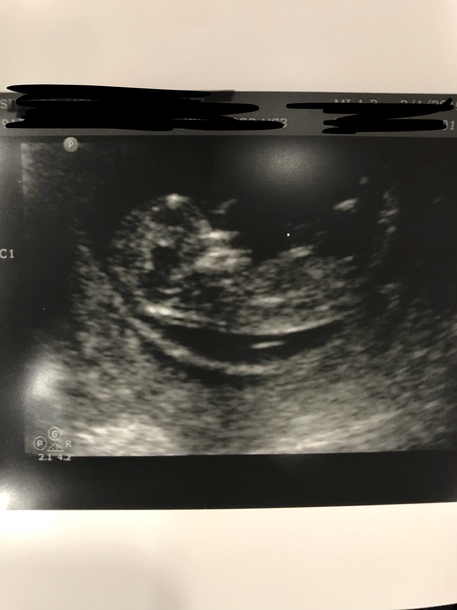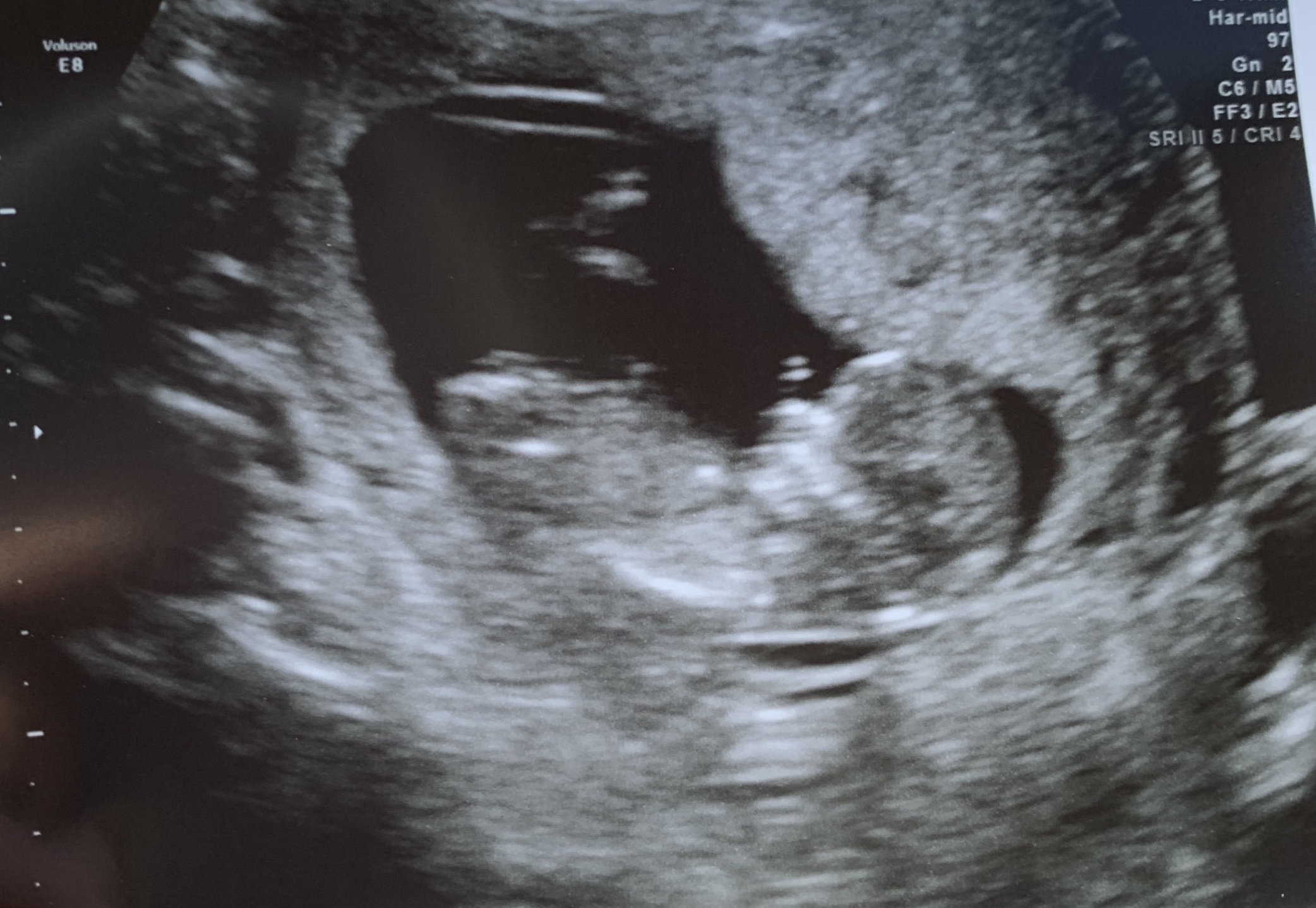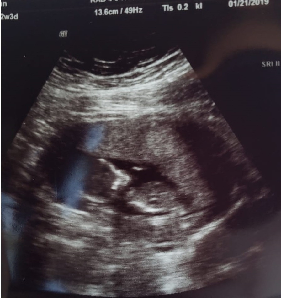 • Had my first prenatal appointment today! Got to see my little gummy bear again (original got an ultrasound from a free pregnancy clinic). Everything looks good! I'm 9 weeks pregnant but baby is measuring at 8 weeks 6 days. 2.2 cm, heartrate at 176. I am so happy! Image on the left was at 7.5 weeks, and on the right, today at 9 weeks.
