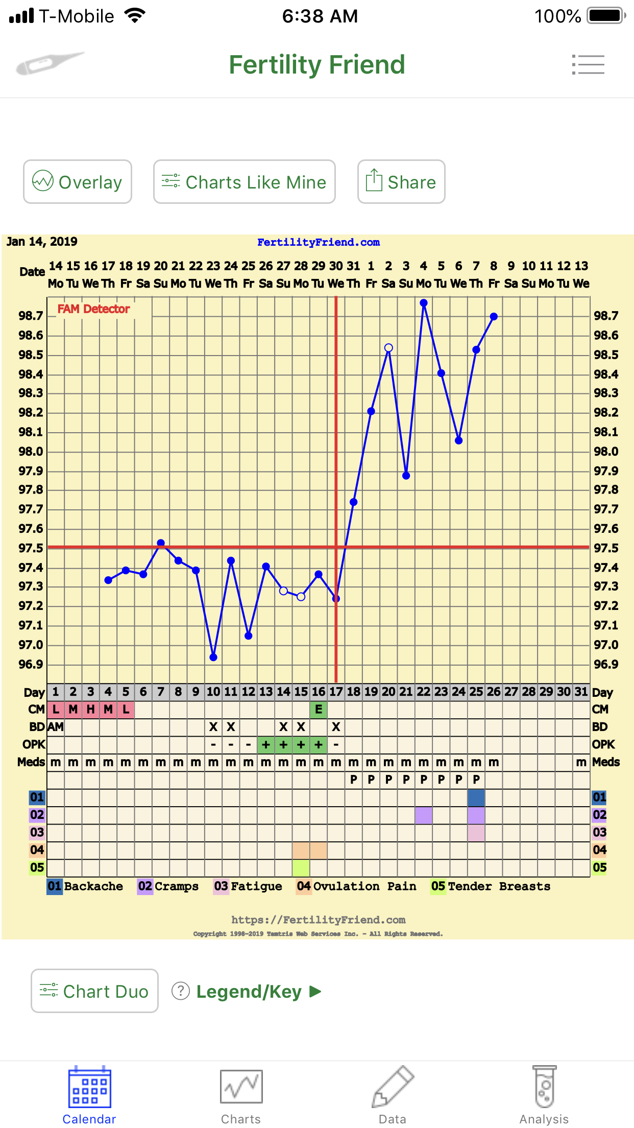 CS/Q: not charting. I knew this cycle was going to be bad bc of my travel schedule. Based on CM, I already O'd but really not sure as to which day.