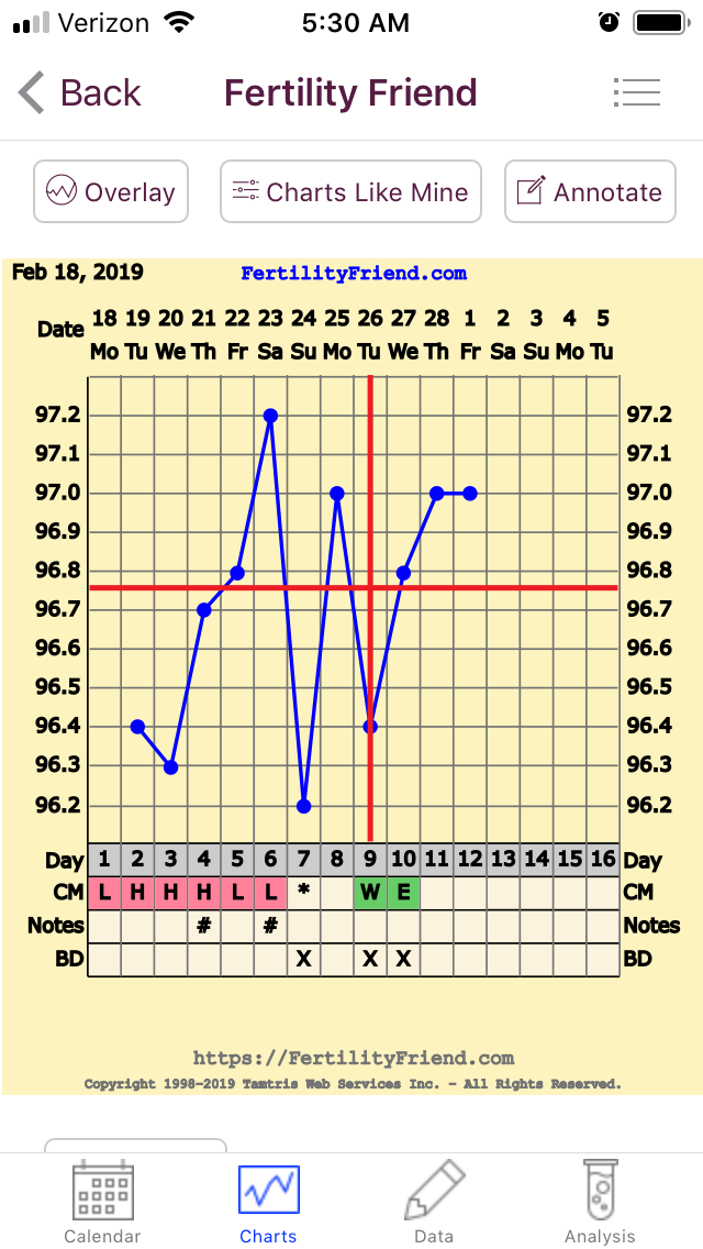 Testing: too early but I’m pretty sure I’m out. Temps have dropped the last couple nights and I’m feeling some light cramps that feel like impending AF. I expect AF on Tues so will prob test Sun or Mon if she doesn’t show by then.