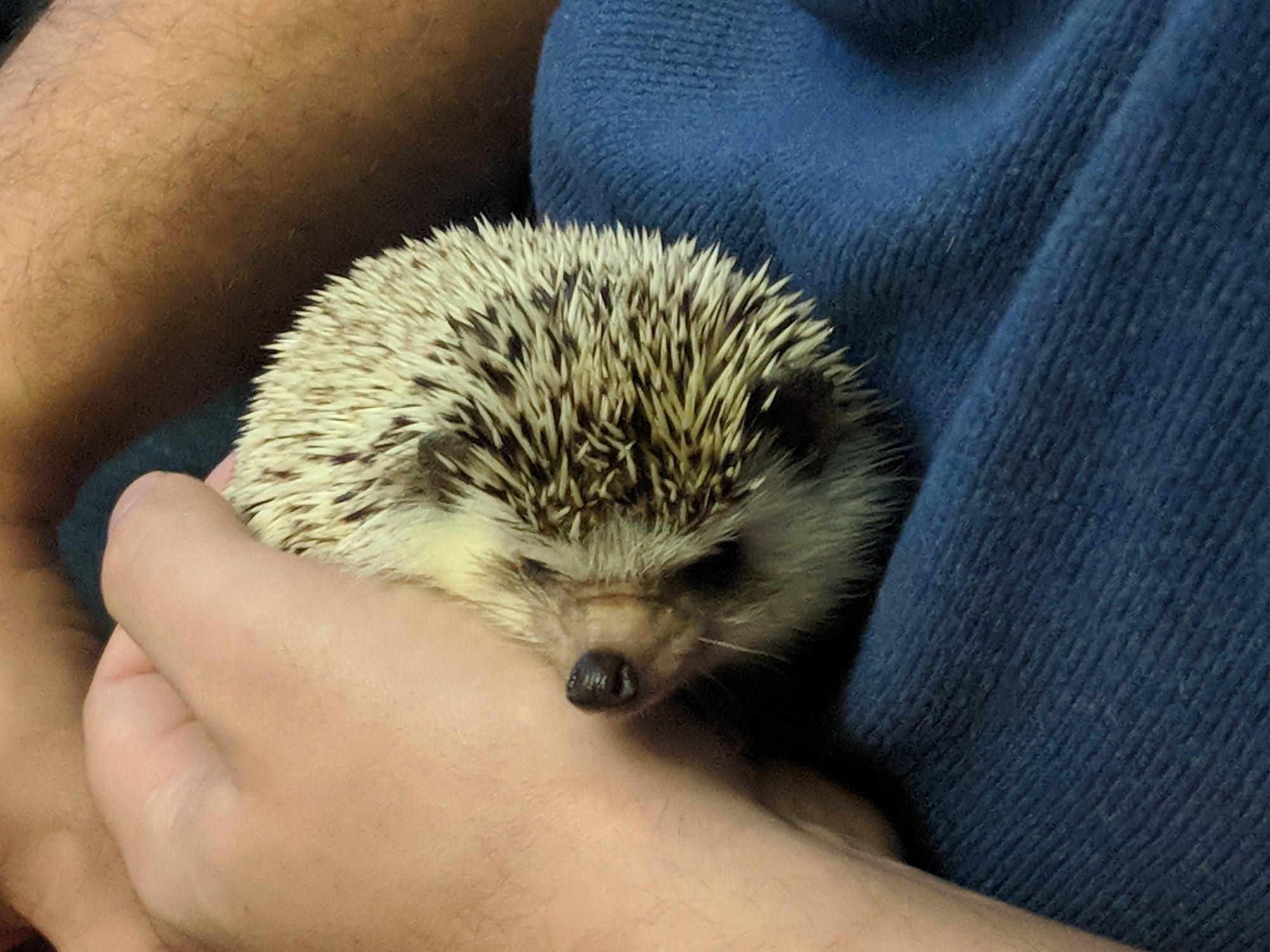 I'd love an owl or other kind of raptor or falcon. We already own an adorable hedgehog who is considered an exotic pet. Here he is being cute and grumpy