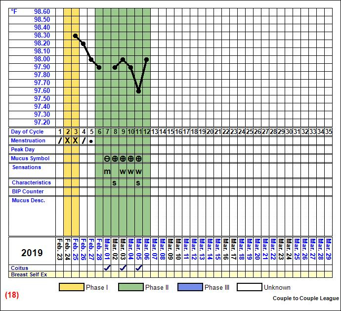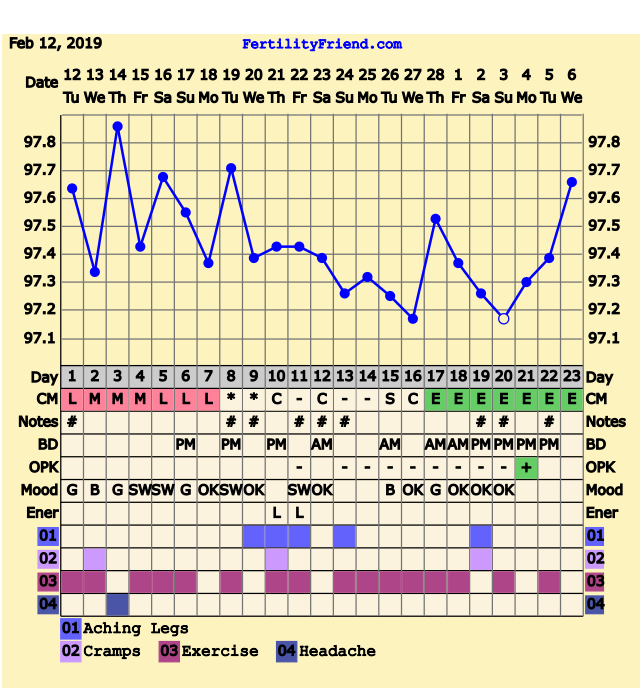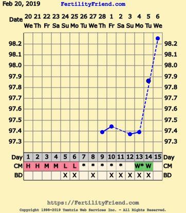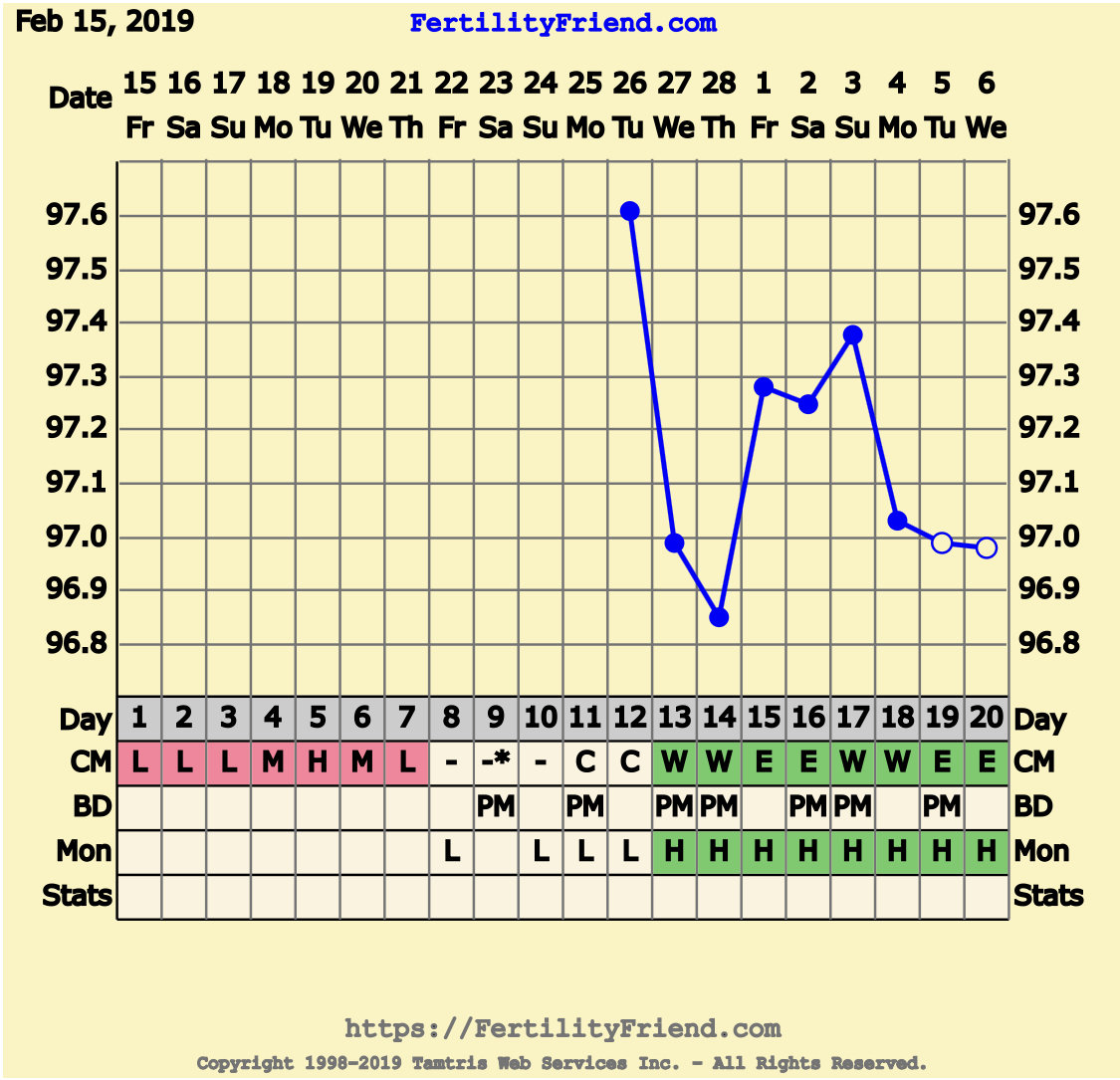 CS/Q: My discarded temp from yesterday is right in line with my temp jump this morning. I might add it back in if I get another high temp tomorrow. I hardly had any fertile CM this cycle though 😕