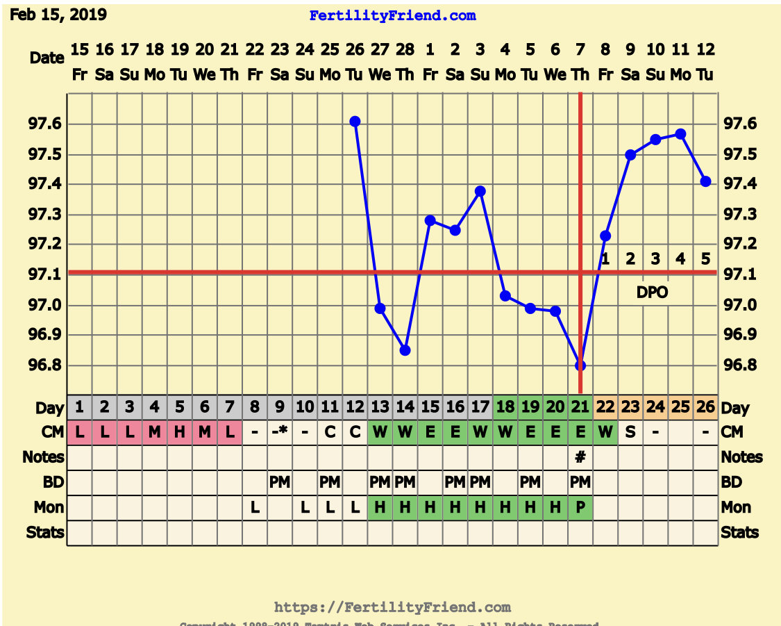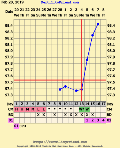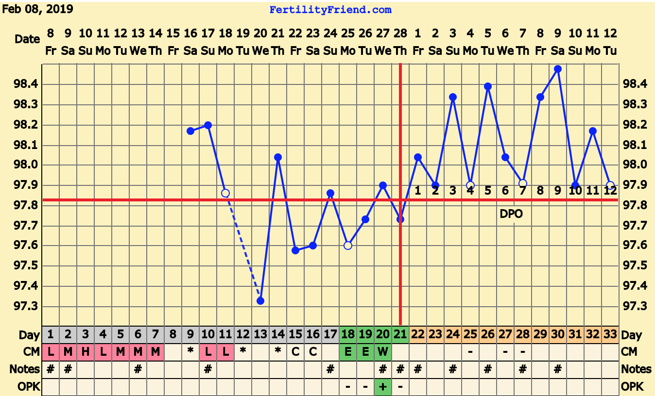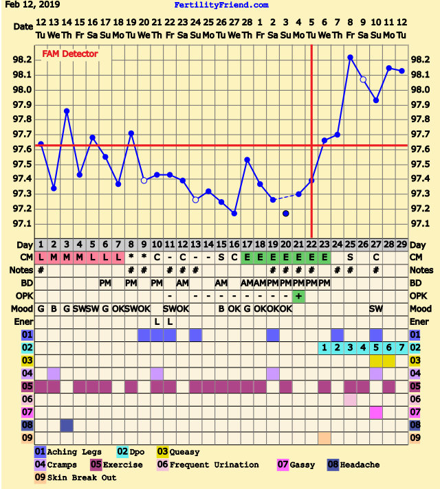 CS/Q: overslept this morning so missed my temp. Leapt out of bed in a panic! So, no chart to share but Still mild cramping, and feeling like AF is on her way.