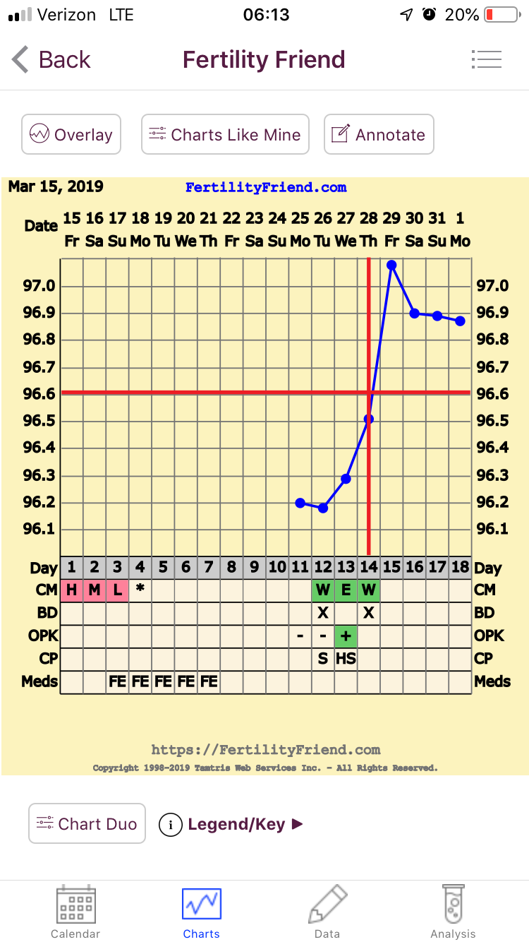 R/R: Rave: My chart is giving me hope! Rant: My chart is giving me hope! Like so many of you have said, I’m nervous to get my hopes up only to have them dashed. It doesn’t help that last month my chart trended up & FF kept giving me a higher & higher likelihood of success, only to stare at stark white BFNs.