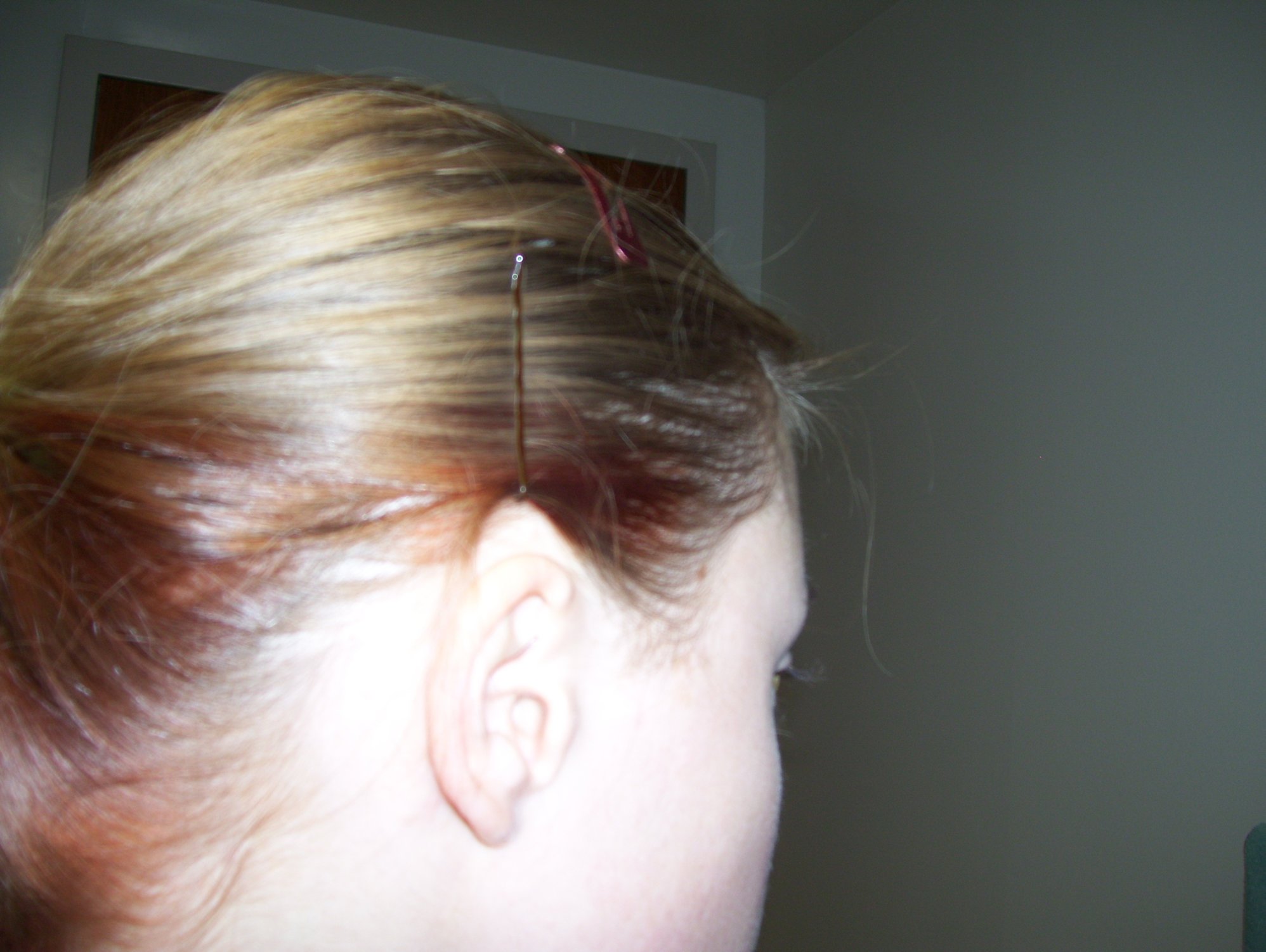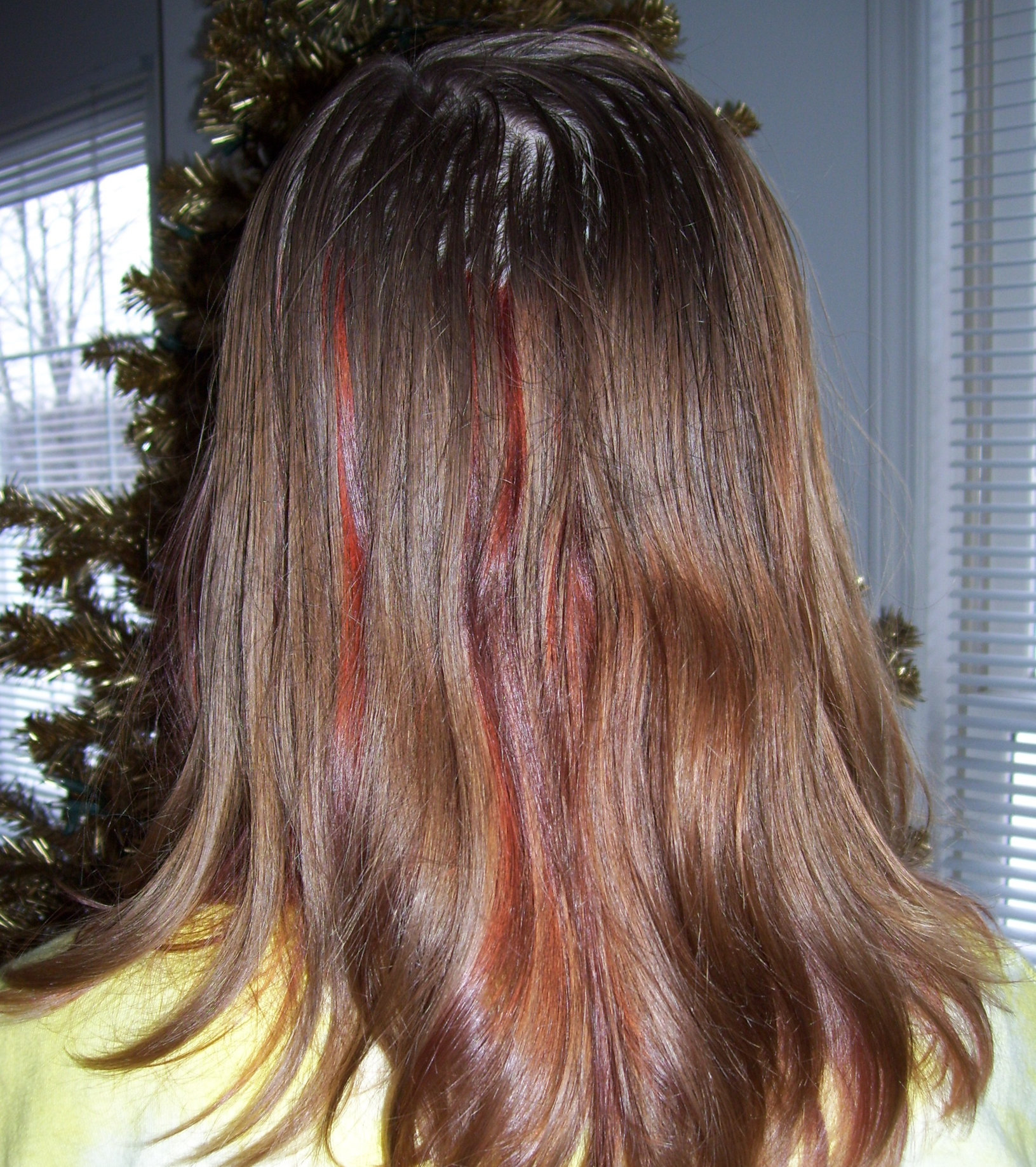 I asked my mom to re-dye it over winter break and the red came out much brighter. She took a pic from behind and I posted it on Facebook telling people to "ignore my greasy hair." Never mind that it looks like my skull is bleeding...