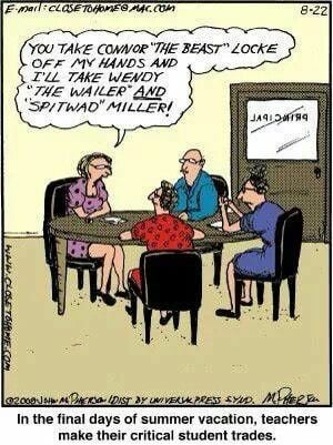 @whitealbum29 oh our process is way more complicated than it needs to be. We do pink and blue post it notes on chart paper. Each child is put on a post it note with math and reading scores (and if they haven’t passed the third grade reading guarantee). We also put a red dot in the bottom right hand corner if they’re a behavioral problem, mark if they’re on an IEP, and put names of students they need to be separated from. Then we sort them in front of the next grade level. That was last week. This week, we had to watch the second grade teachers sort and get information on our kids for next year. Sounds like we have a crew next year, too! Including (and I’m quoting the teacher here) a special education kiddo who is gifted, has a 1-on-1 aide, and is a “boob grabber”. Yep. I’ll have him for reading. My principal laughed at my reaction. I mean... you can’t make this stuff up.