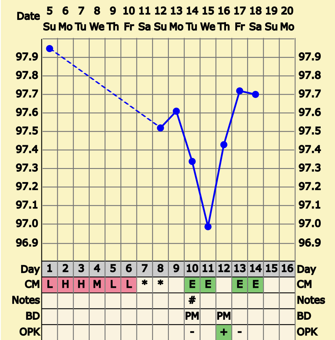 R/R: I’m not wanting to believe that I ovulated on CD11, but it looks like it may be true. I would have crosshairs if my temp today was .02 higher... Anyway, our timing sucks if it’s true and possibly if it’s not. DH got overtime last night and has another shift tomorrow plus the one on Wednesday. I don’t know why AF has been so long. My body is all messed up!