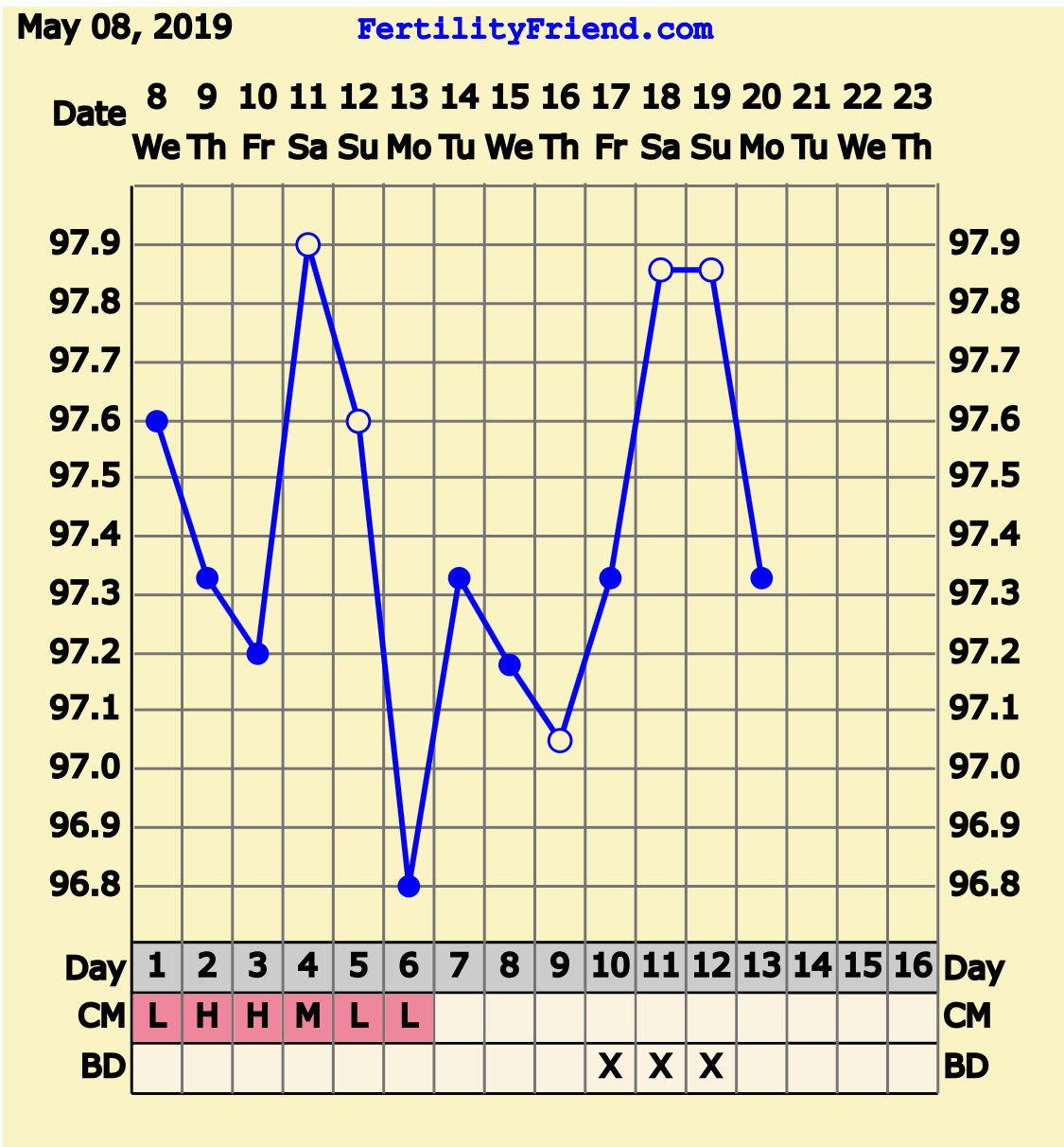 @MrsVP614 glad to hear your H is excited about TTC. This is important! Why do you have so many open circle on your charts? I would also switch to temping vaginally since your temps are too rocky.