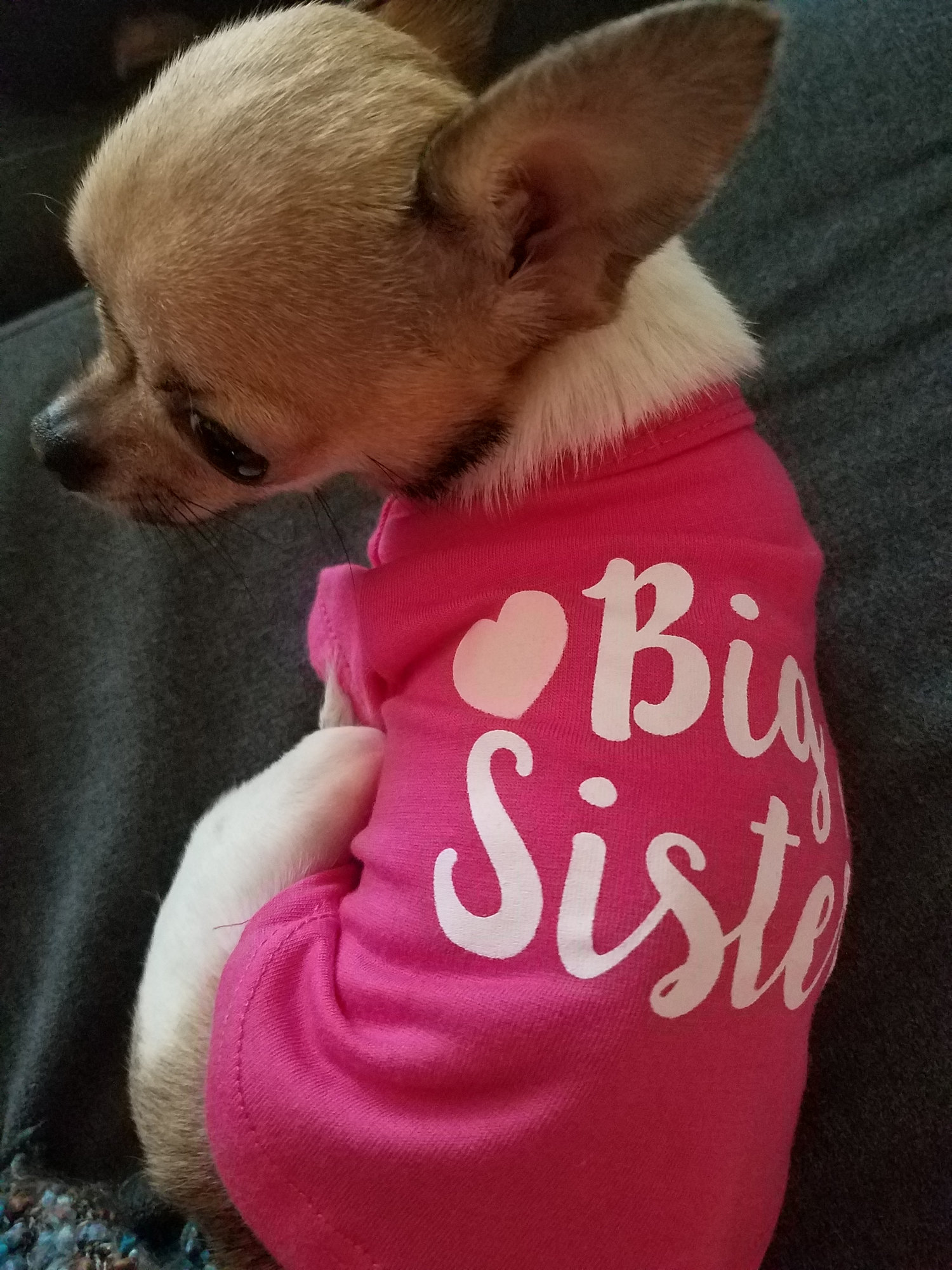 @blueskychicago12 I love the Big Sister outfit for the doggo!