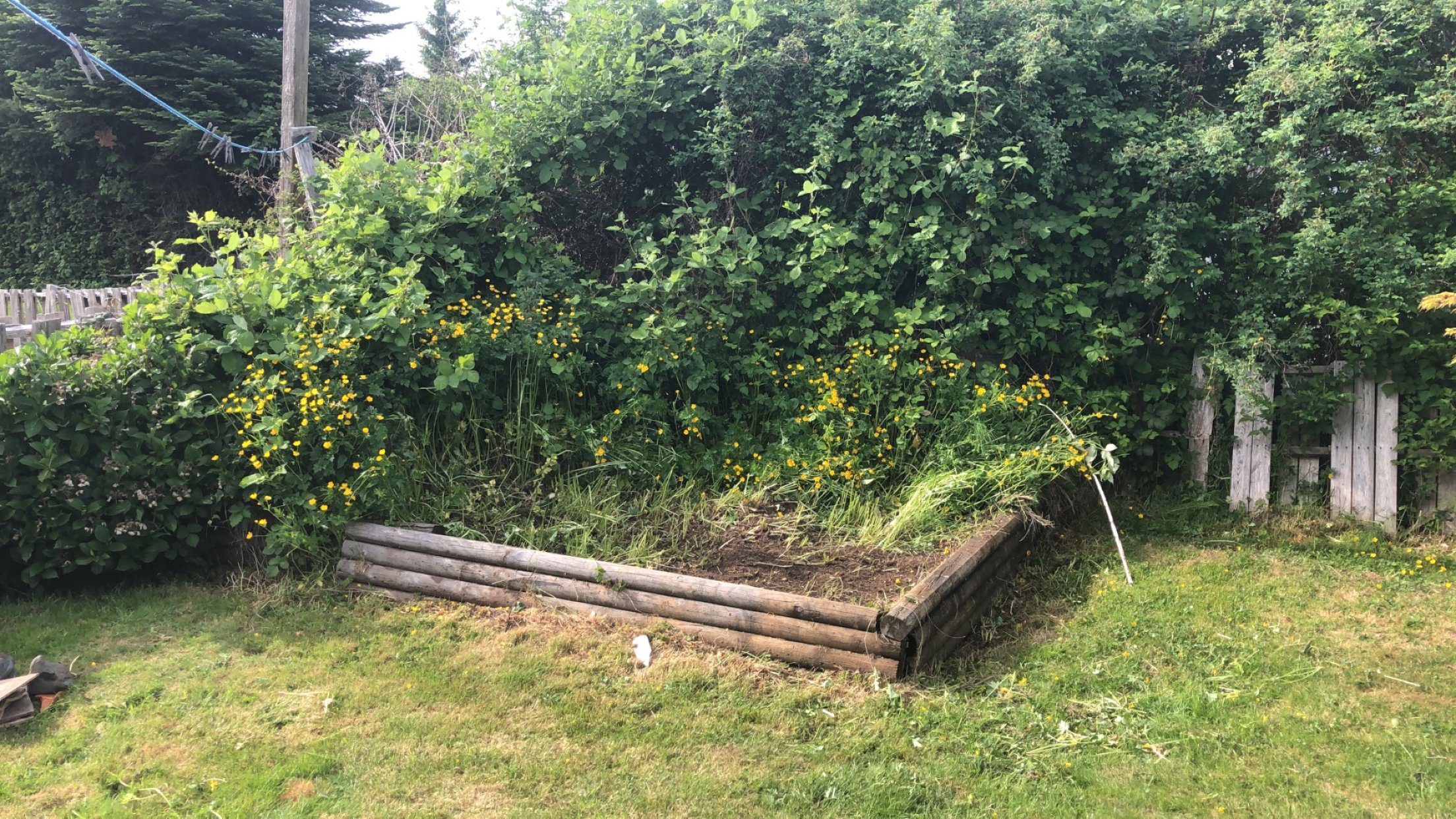 However, because it hasn’t been tended too, each weed needs to be cut out. But not only that, some Einstein put tiles in the garden I guess to try to make it stop growing ? So the weeds grew around them. So you have to chop the weed, pry out the tile and then pull the root out. Oh and did I mention theirs a blackberry bush weaves through all of this ?