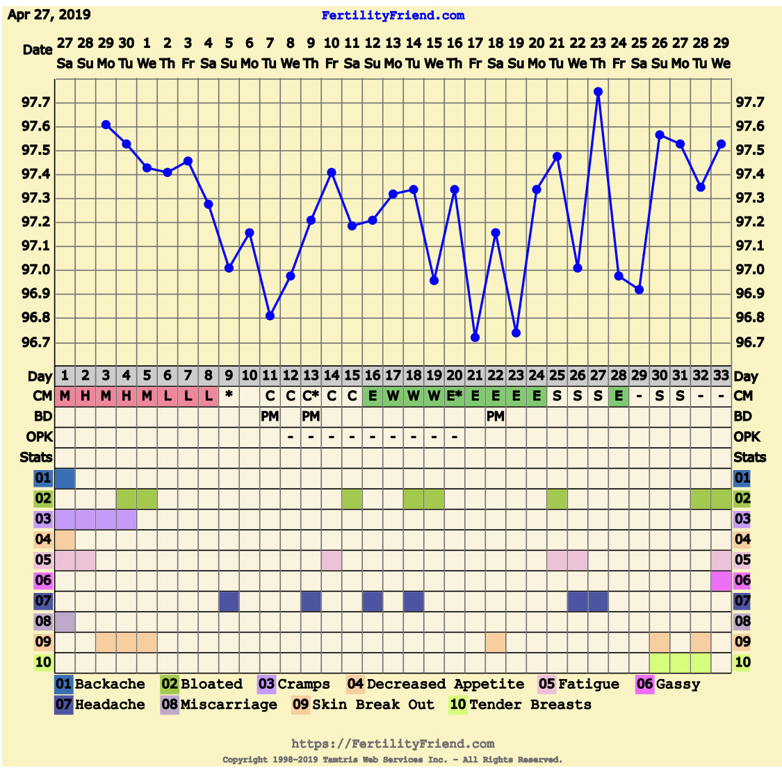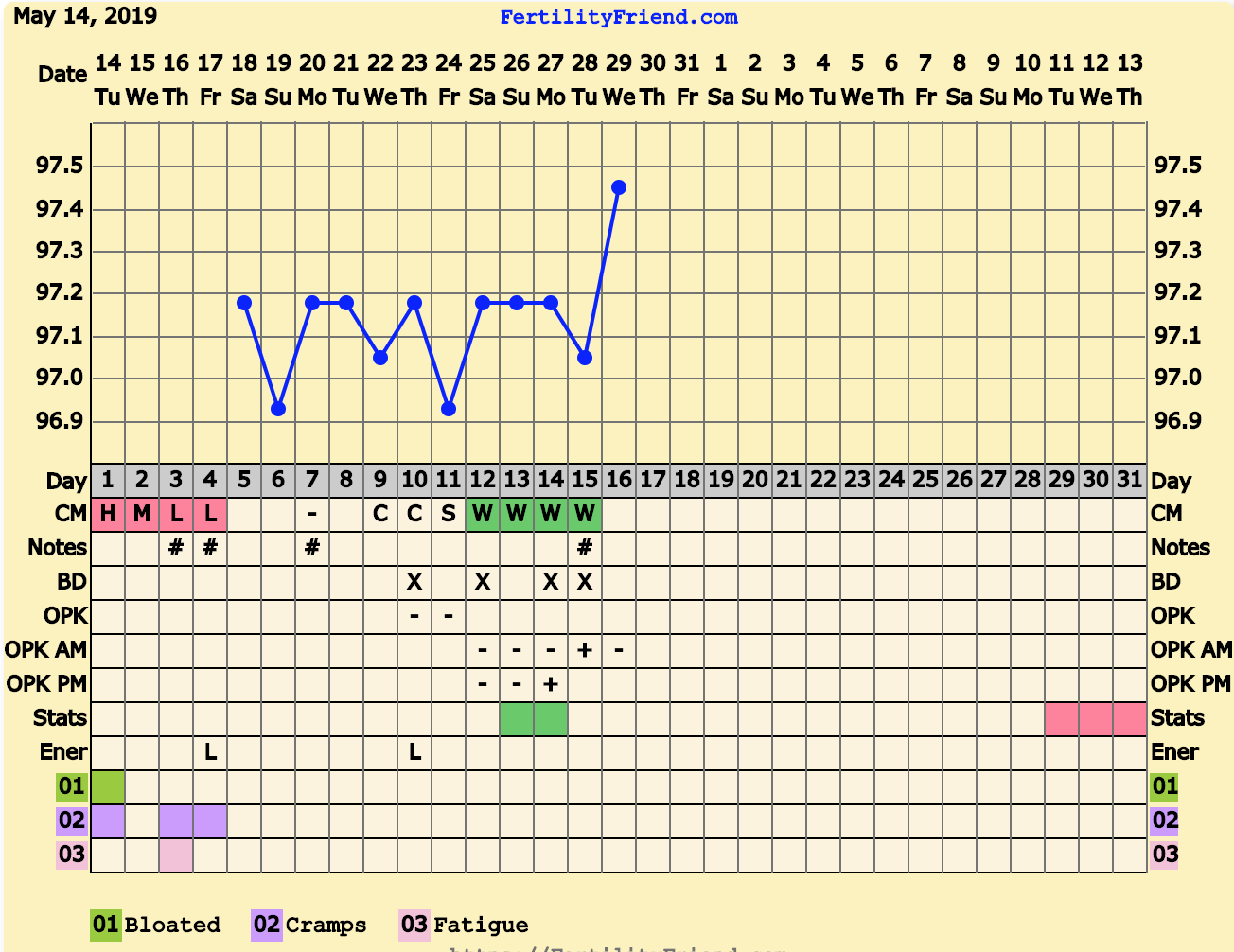 @shamrocandroll I think CD 23 as well, but the EWCM does throw me. My temps have just been so crazy I can’t decide and neither can FF apparently. It finally stopped telling me I was fertile a few days ago. Lol. I am thinking this weekend if AF doesn’t show. We will see. I don’t really expect a BFP since we only went unprotected once this month, and it was CD22. But hey. Who knows. also, I admire your willingness to get up and go walking at 5:30. I’m dead to the world at that hour. Haha.