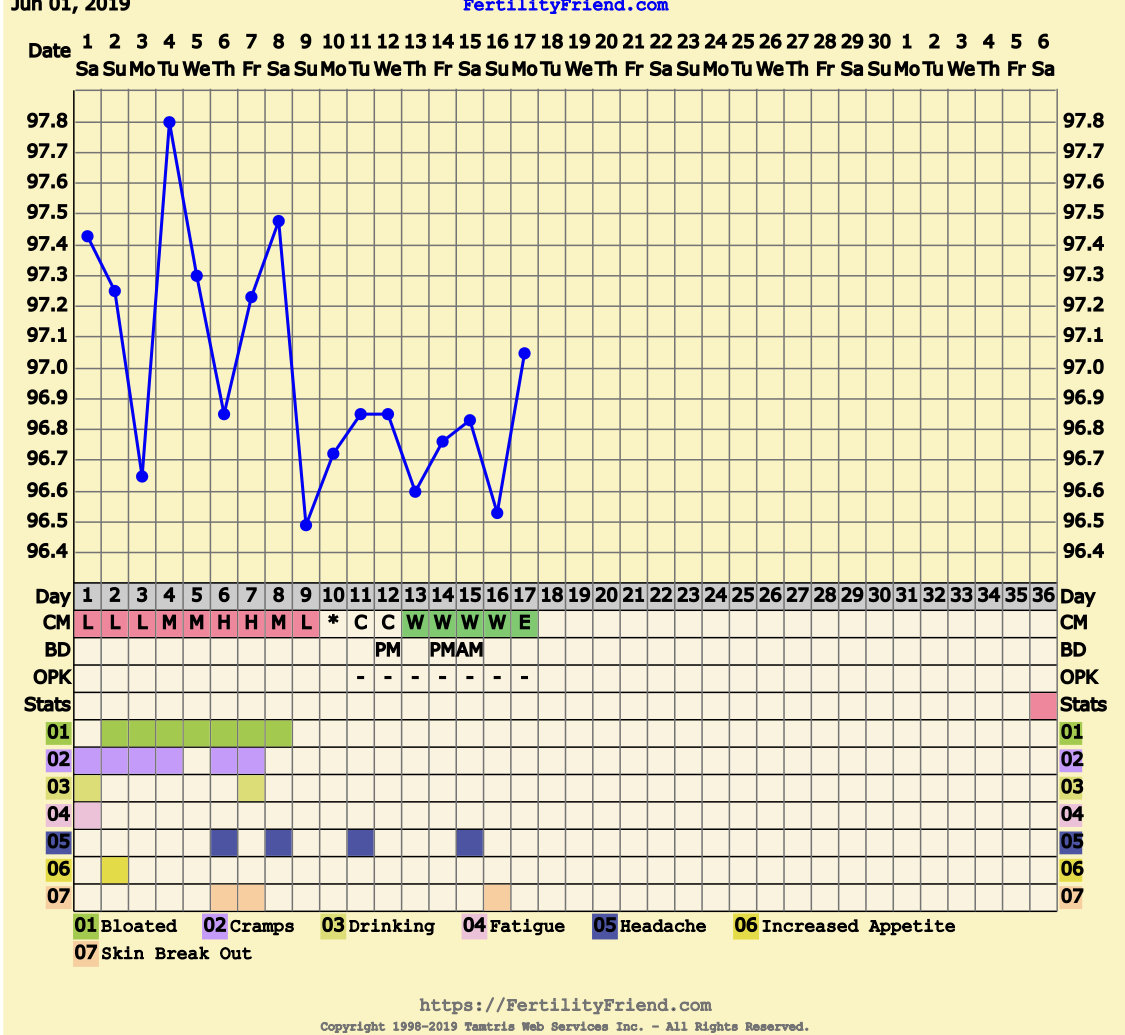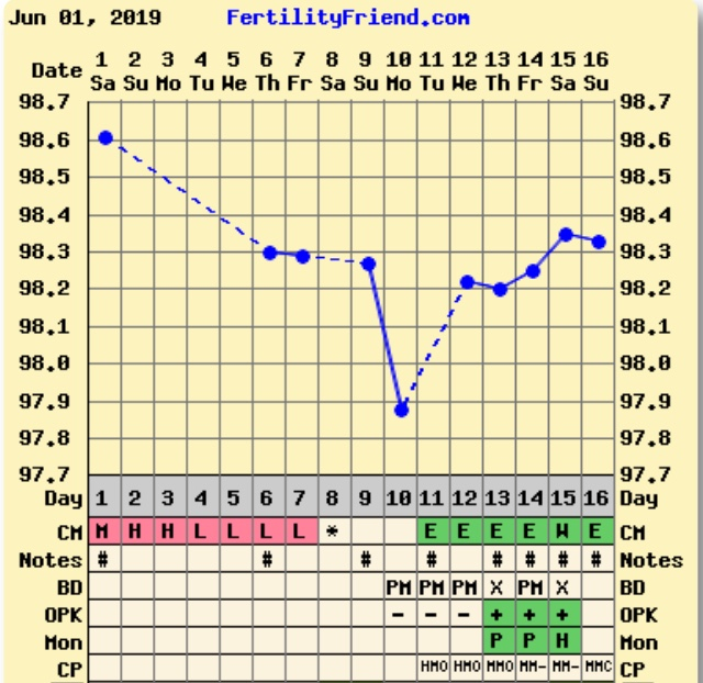 CS/Q: I am used to my CM faking me out before O, but my temp spike threw me a big this morning. I’m going to double up on my OPK and do a clear blue I think to double check. I’m new to wondfo this cycle, so I’m a bit confused. Just hoping O is still a few days away.